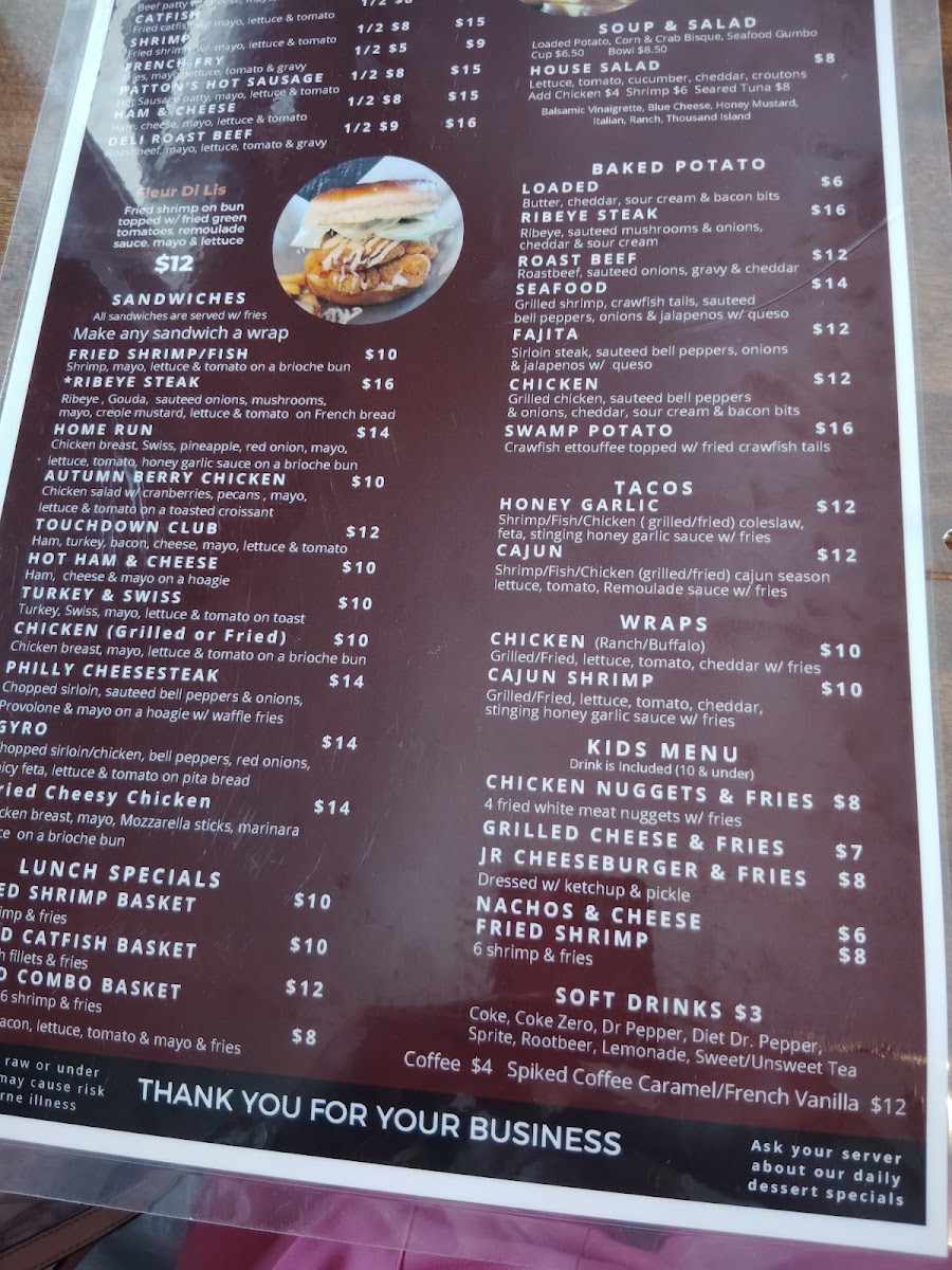 Cheeseburger w/ Patton’s hot sausage patty, mayo, lettuce & tomato on a brioche bun served w/ fries.