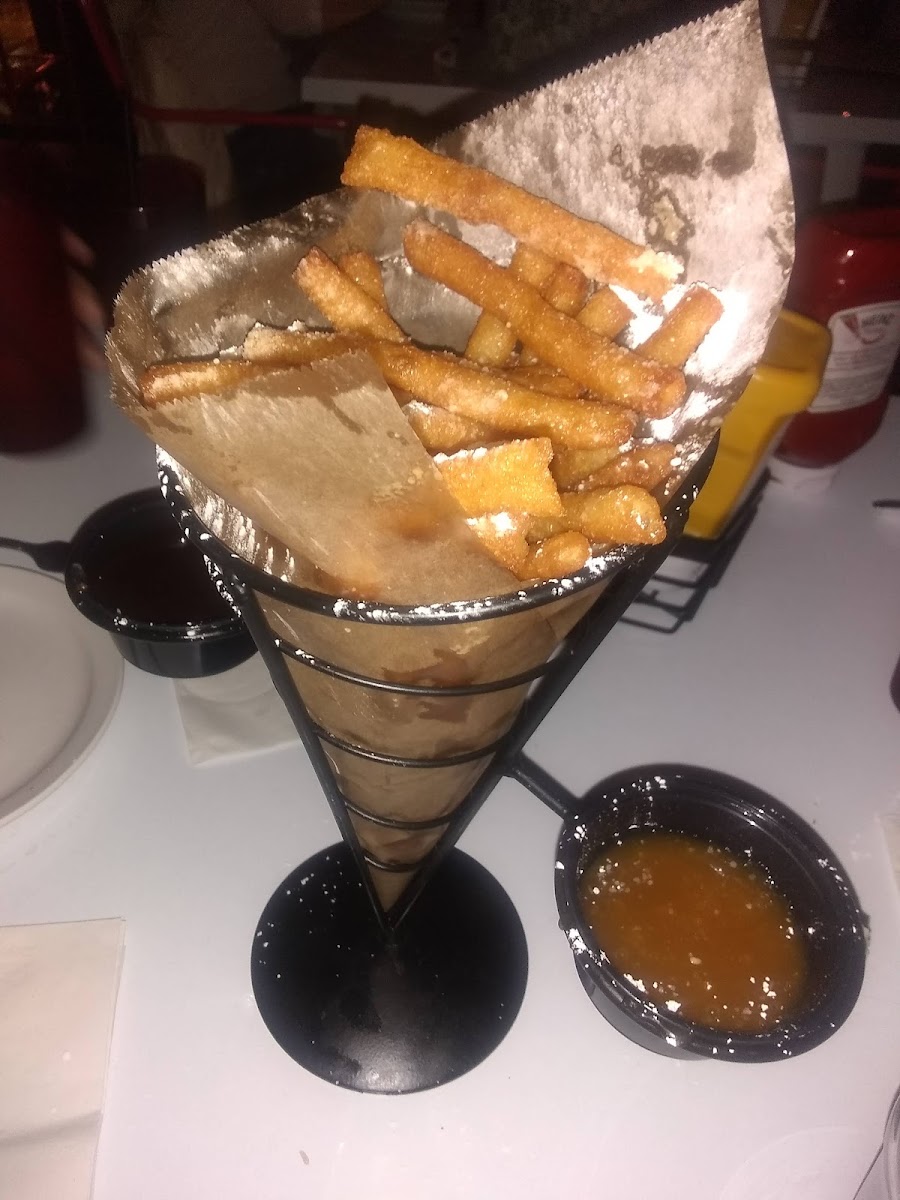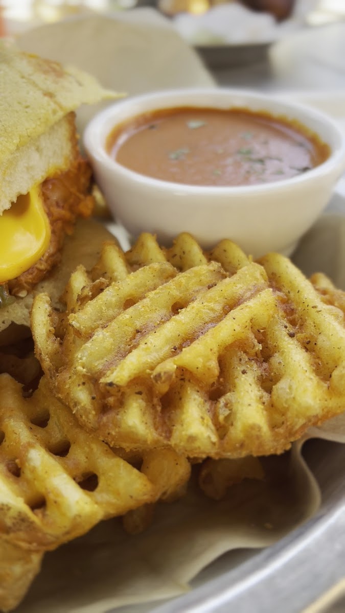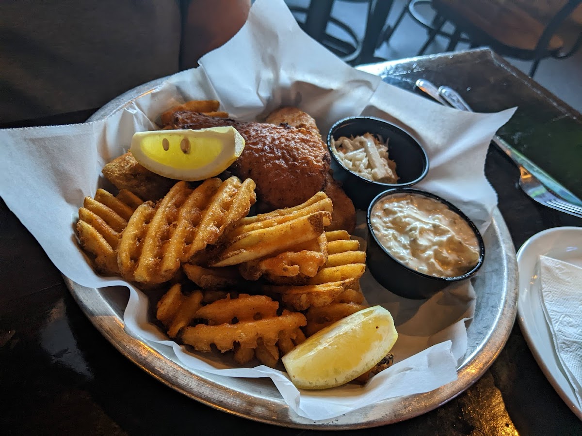Good place for an afternoon with the family. There's lots of space to move around in their closed in patio area. We ate in the unclosed area it was slightly cold but the food was good. Two members ordered the fish and chip.mral. The batter was crispy and crunchy perfectly paired with waffle fries. I ordered the Merkts chicken sandwich and another ordered the berger. Our table split the nachos. Food came fast and was great!!! Our server was very attentive and tried hard. My rating is a 5 because of their efforts!