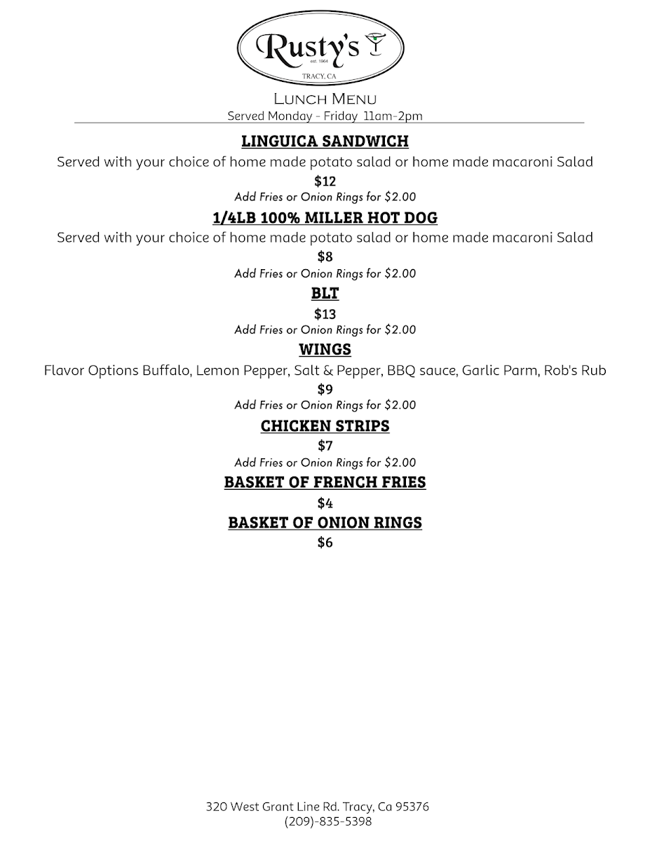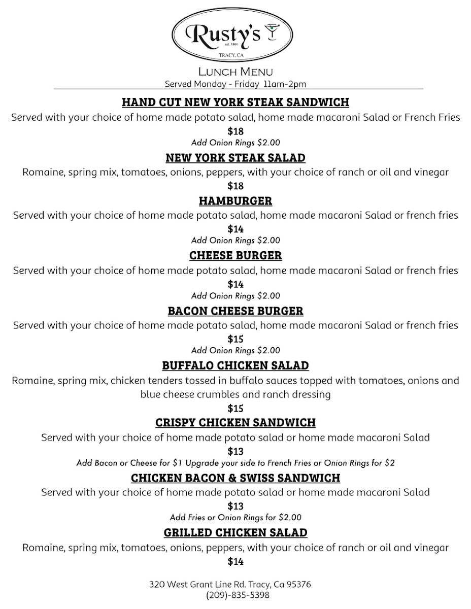 Lunch Menu M-F 11am-2pm