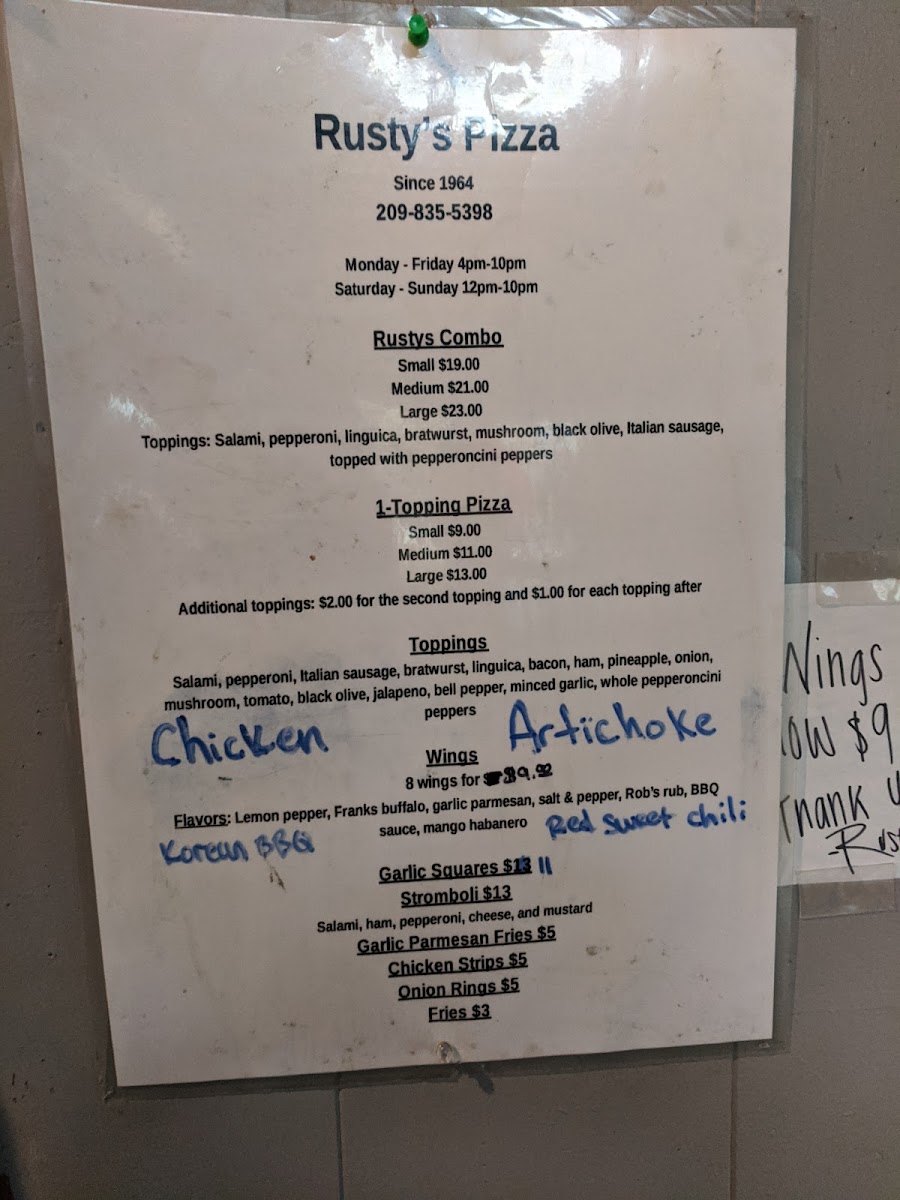 your choice of: Salami Pepperoni, Italian Sausage, bratwurst, linguica, bacon, ham, pineapple, onion, mushroom, tomato, black olive, jalapeño, bell pepper, minced garlic, whole pepperoncini peppers Small $11 | Medium $13 | Large $15 $2 for a second topping and $1 for each additional topping after that