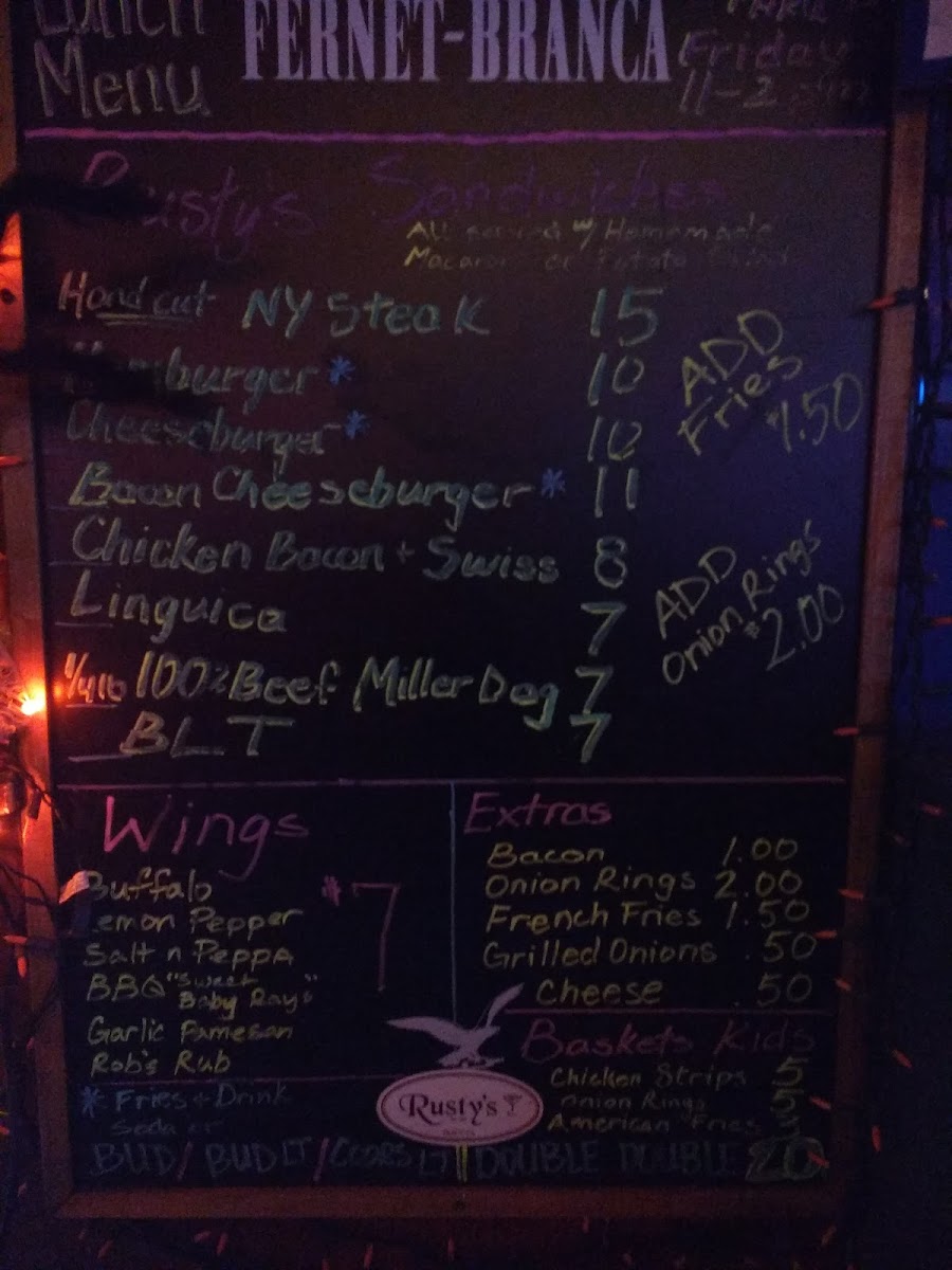 Served with your choice of home made potato salad, home made macaroni Salad or French Fries Add Onion Rings $2.00