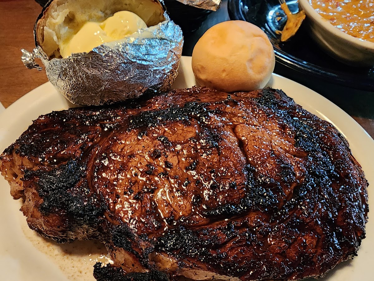 Outstanding ribeye! Perfectly cooked and seasoned! Hubby and I split a small steak and added additional sides…all of which were delicious. We got blueberry cheesecake with white chocolate shavings as a “go” order for later.