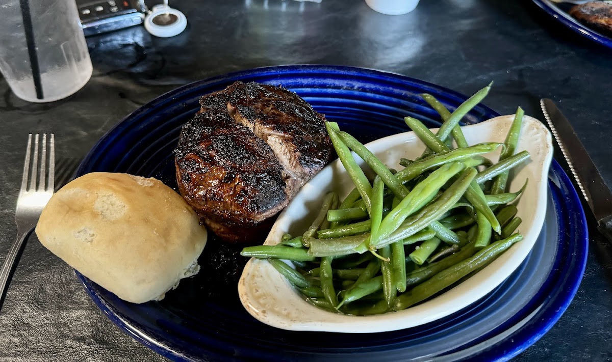 The food was delicious! The fried green tomatoes were superb, the ribeye was well seasoned and tender, and the potatoes had all of the trimmings! Only thing I’d suggest is toasted, buttered Texas toast to complement the meal instead of the roll. Service was on point and the ambiance is satisfactory. The menu has plenty of options which makes it great for outings. No complaints and would definitely dine again.