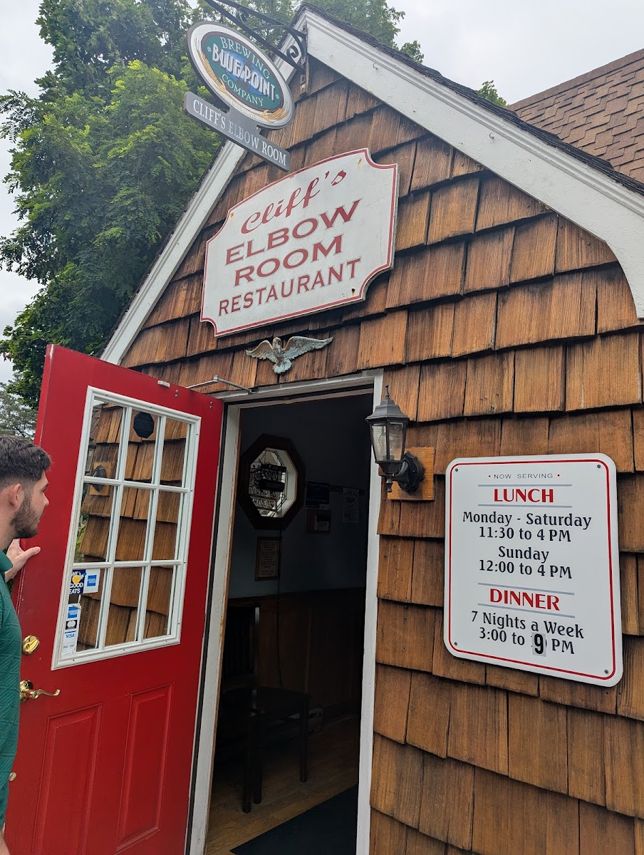 Classic North fork restaurant that's been around most of my life. Great food quaint atmosphere and the marinated steak is the way to go. I went on a night where they had a special, and though everything was good, the steak was a little bit thin. It was tender and well seasoned and perfectly cooked as always, but I was a little disappointed. Next time I'm going for the porterhouse and reliving my childhood memories. Another great option is their marinated burgers. I kind of think that Cliff or whoever is running the restaurant these days are kind of like that guy in the Stephen King novel about a guy who has a Time portal in the the basement of his Diner and can go back 30 years in time and source local grass-fed Non-Commercially steroid-filled beef. Their steaks and…and burgers are always top notch, and their red clam chowder is outstanding. The weekly steak special is a great deal, but if you want the real elbow room experience, come and get the porterhouse or the New York strip you will not be disappointed. I recommend that if there are two of you one orders the marinated steak one orders the non-marinated steak. Then you can compare and decide. Then come back here and weigh in on your thoughts. For me? I'm normally a salt pepper only guy when it comes to steak, but at the elbow room I will only go marinated because it's the only place you can get that unique Elbow room black marinade. A MUST visit.