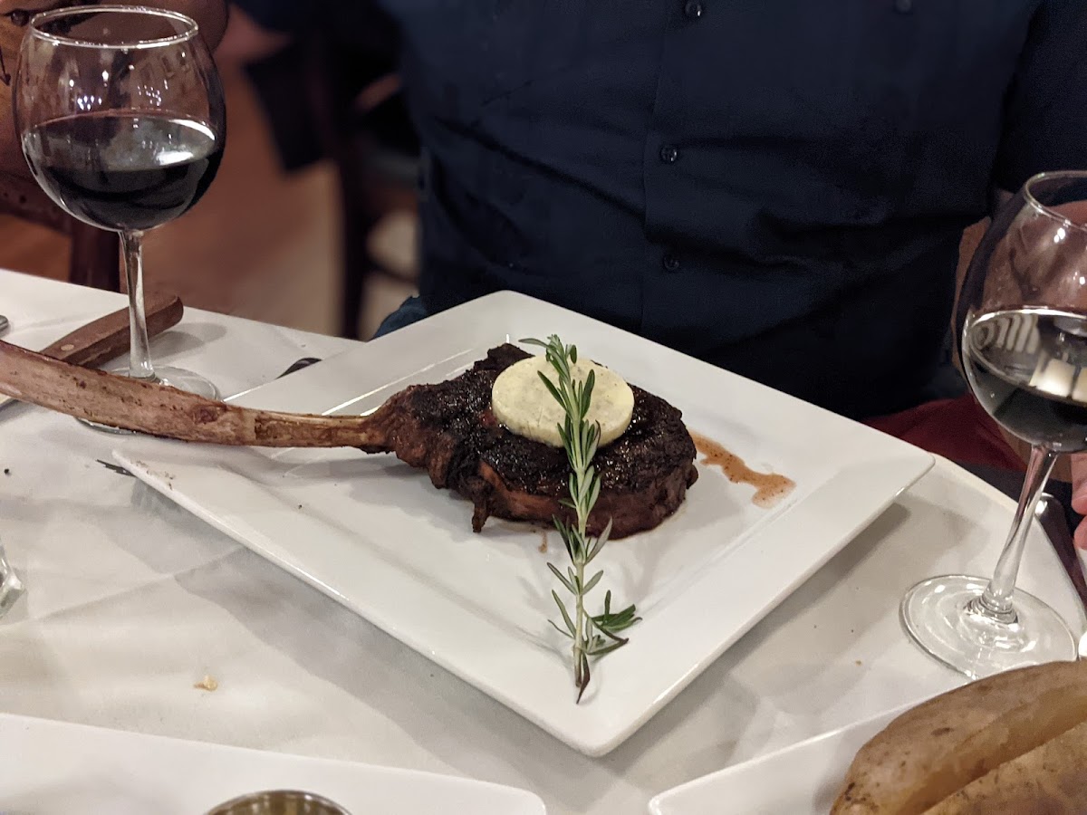 Ryan- valet friendly and personable. Jaymez - our server, was very knowledgeable, interactive, and a pleasure to talk with. First off, we arrived and saw they had complimentary valet parking. This was a nice plus! We started with cocktails, old fashions were made just right. We had the lamb chops and the fisherman's grill (see photos). Everything was amazing, flavorful and portioned well. We had the caprese and the tomato goat cheese. Both unique and a great pre course to the main entrée. For the main we had the special. A 10 oz filet, one standard and one with the blue cheese crust as well as a lobster tail, mixed with cheese butter and all sorts of deliciousness. For sides we had the mushrooms, brussle sprouts with bacon and a baked potato. All of which was cooked perfectly. Would highly recommend if you are looking for a up scale steakhouse with great atmosphere, amazing staff, and even better food!