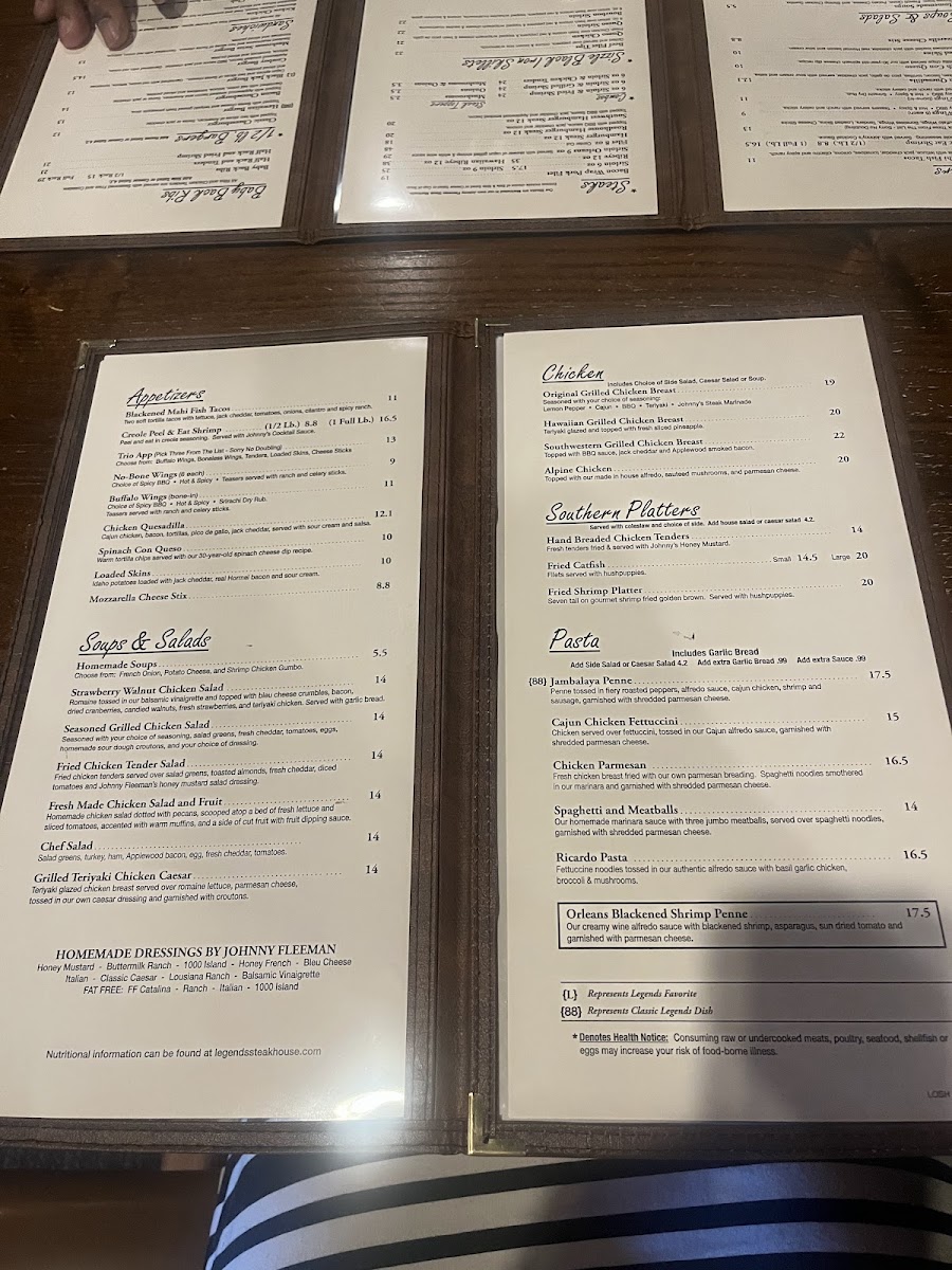 2 grilled chicken breast with choice of seasonings: Johnny’s Marinade • Teriyaki • Lemon Pepper • Cajun. Served with 2 sides.