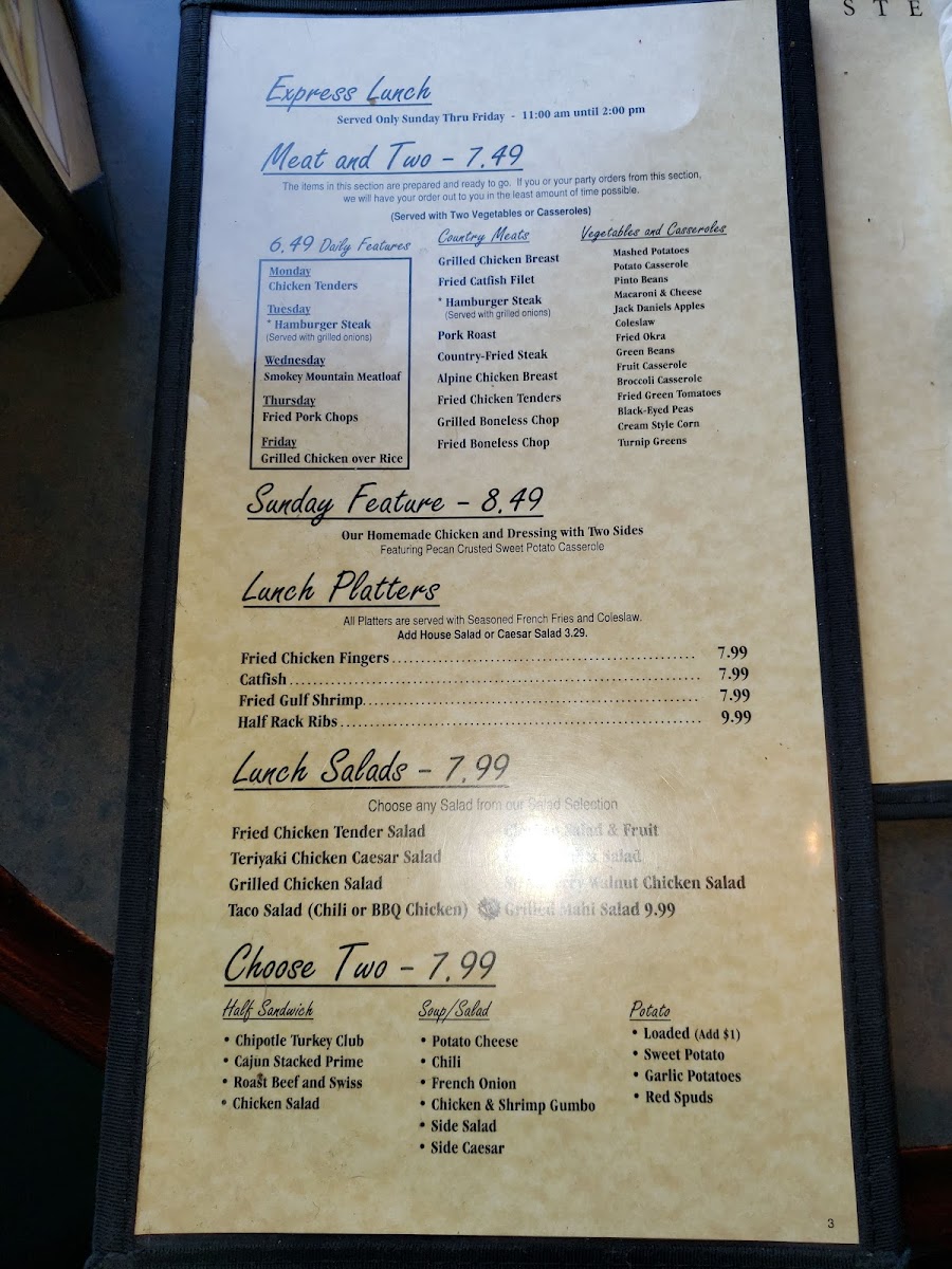 Choose from: Shrimp & Chicken Gumbo, French Onion, and Potato Cheese.