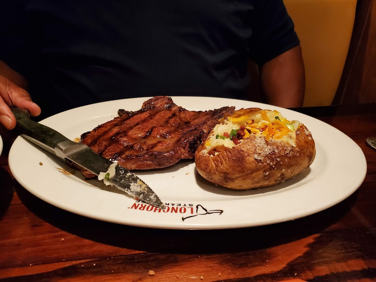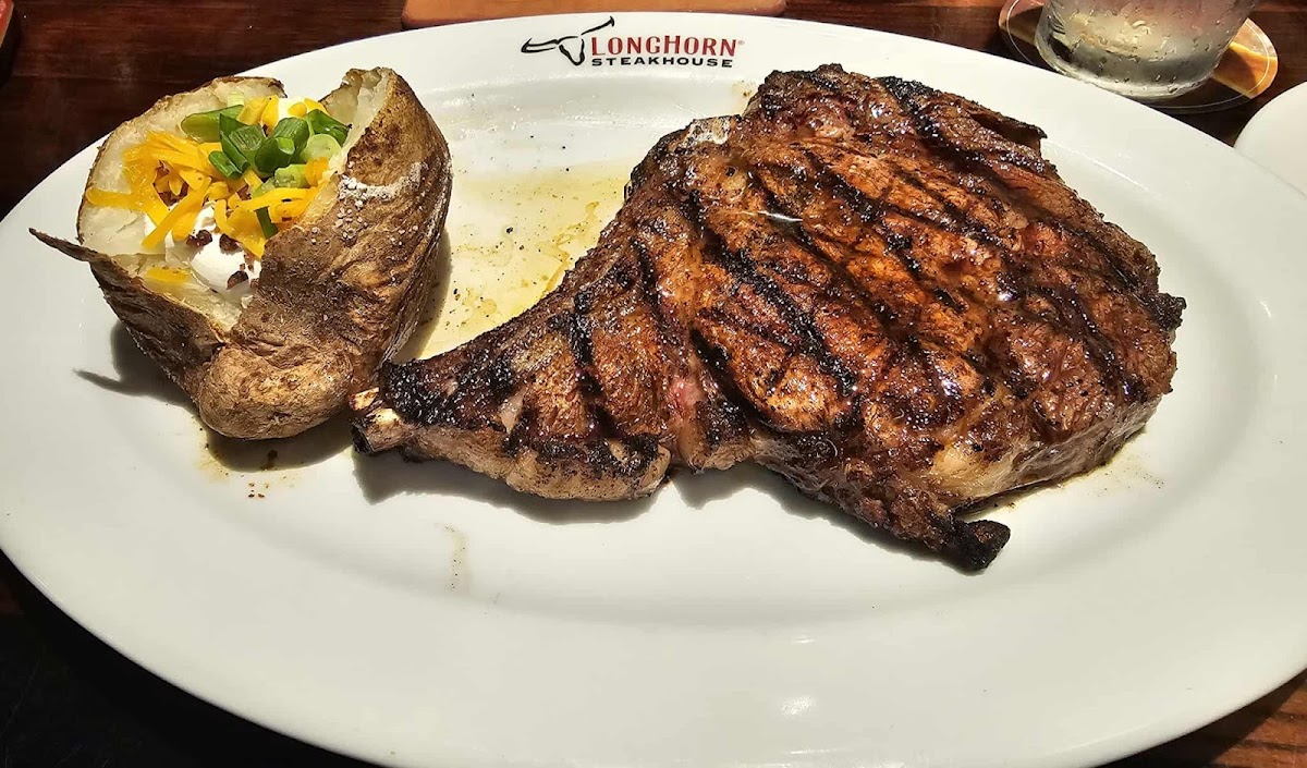 My wife and I went to LongHorn Steakhouse today and had an excellent experience from start to finish. She ordered the Outlaw Ribeye and I had the LongHorn Porterhouse, and both steaks were cooked to absolute perfection. The flavor, tenderness, and portion size were spot on. We both started with the house salad with ranch and a loaded baked potato on the side, which were fresh, flavorful, and the perfect complements to our meals. The service was outstanding, attentive without being overbearing, and our drinks were always full and right on point. It’s rare to walk away with no complaints at all, but this was truly one of those experiences. Great food, great service, and an overall enjoyable dinner. We’ll definitely be coming back
