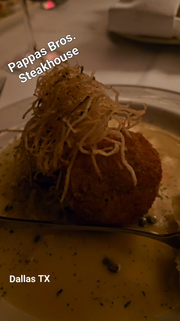 Had dinner at Pappas Bros Steakhouse and it was truly a memorable evening. From the moment we walked in, the atmosphere was warm and intimate, with just the right level of sophistication and sufficient lighting. The art deco style was very appealing and elegant. For starters, we shared the crab cakes, which were cooked to perfection—sweet, tender, and utterly delicious. For our main courses, I ordered the the ribeye, cooked medium-rare, and it was a 10/10. The steak was incredibly tender, flavorful, and perfectly seared. We paired our meals with the lobster Mac and cheese and asparagus. We left feeling completely satisfied and look forward to returning.