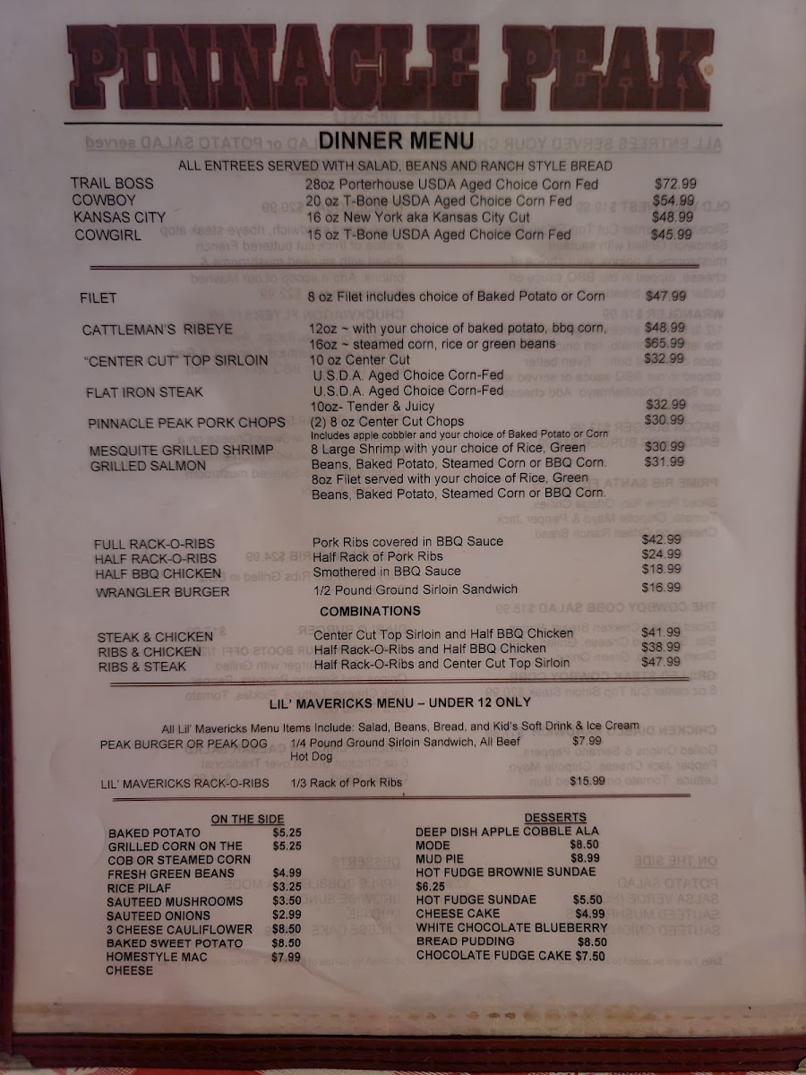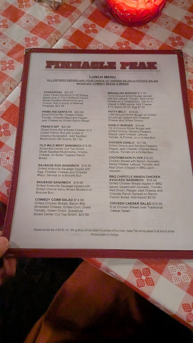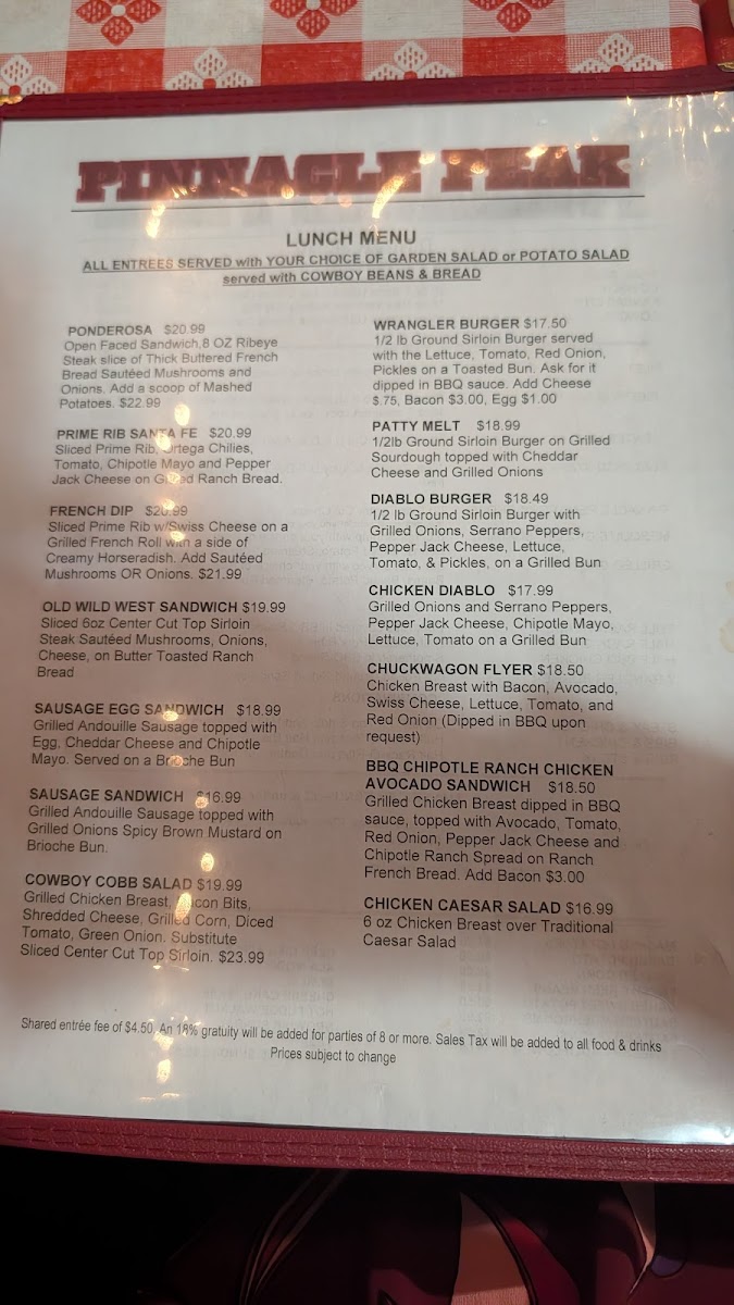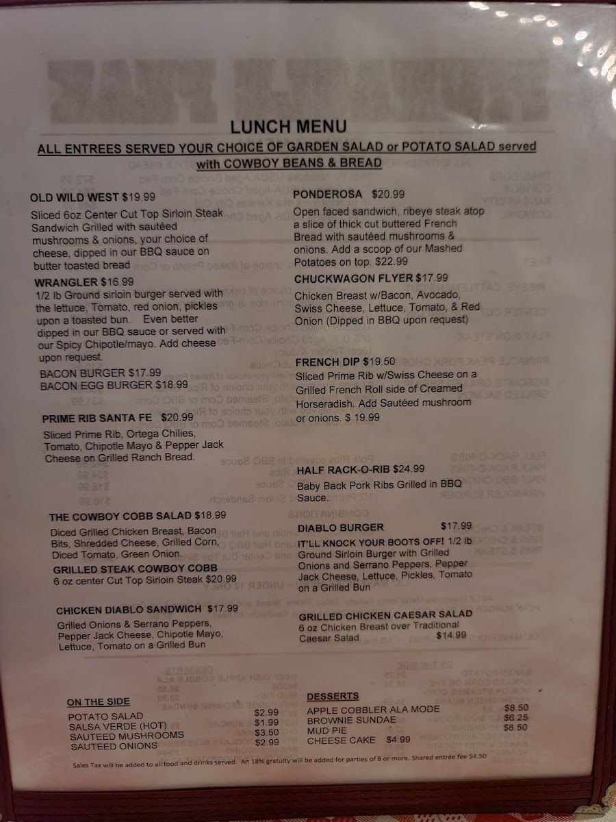 Lunch - All lunch entrees come with Cowboy Ranch Beans and Bread. Served with your choice of a Garden Salad or Potato Salad.