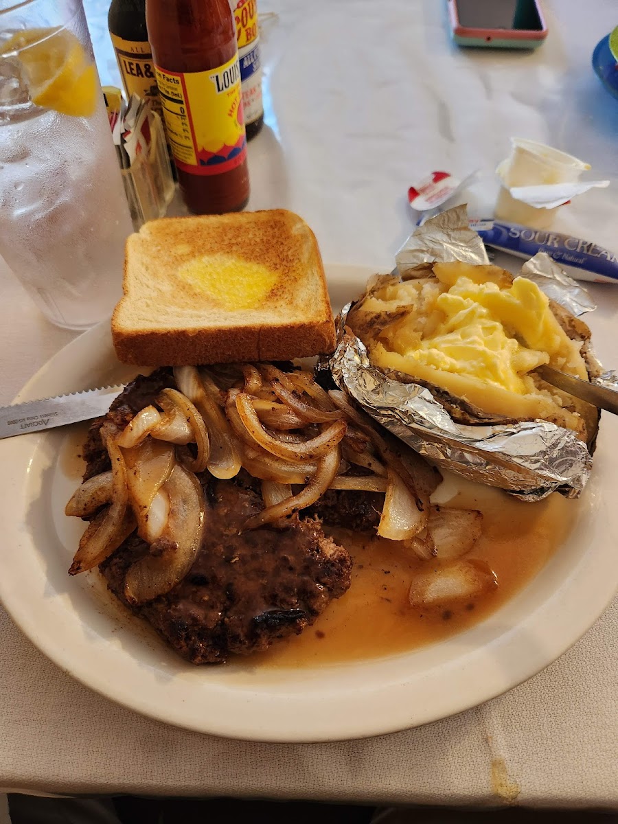 My husband’s first time to eat at Yampertown Steakhouse. It had been a few years since I have been. We had a wait to be seated. We signed in but feel like others we seated before us. For our appetizer, we had the jalapeño hush puppies. The salad bar was very good and kept well stocked. Our entrees were the special of the night, an eight ounce ribeye. It was ok. I’ve had worse, but I’ve had better. After a very long wait for our food, it was a little disappointing. May try the catfish in the future. The noise level is high if it is a sensory issue for some.