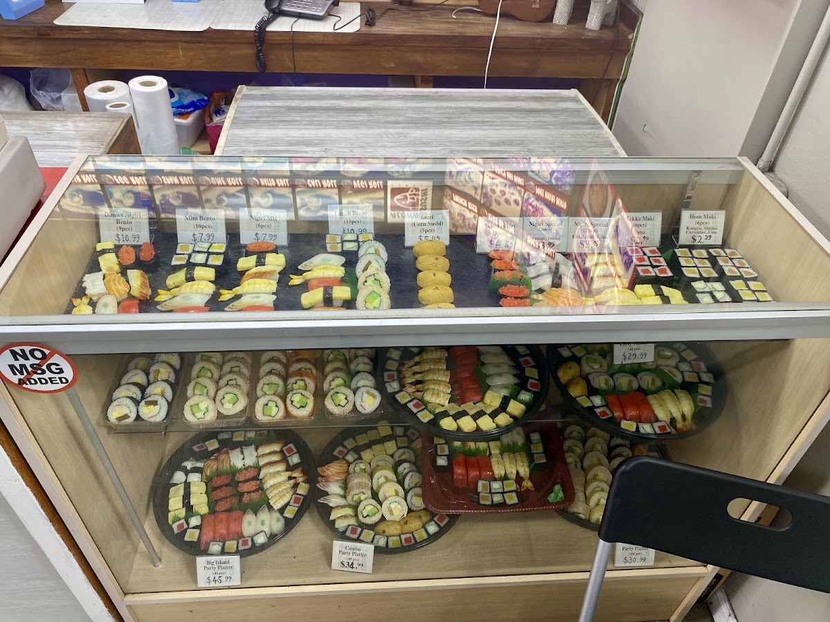 This place has a great variety of sushi and meals. Their prices are very reasonable. I always order the sashimi bowl. The people here are very nice. No MSG and free parking are a plus.