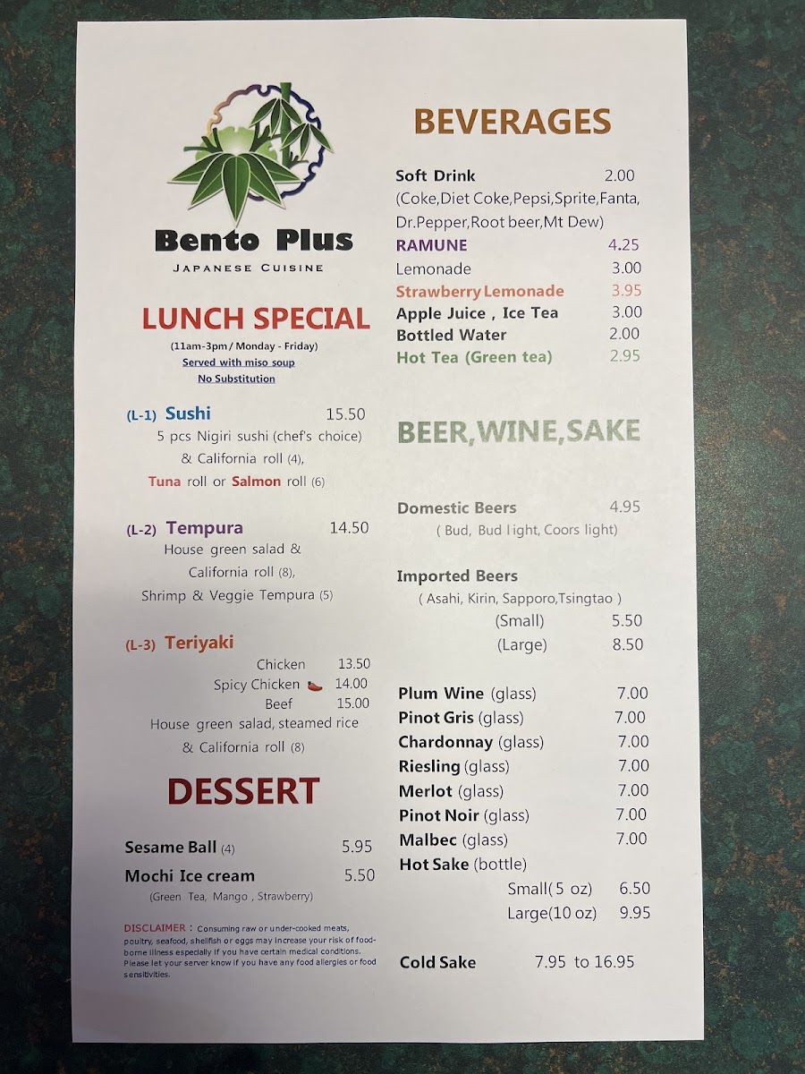 5 pieces sushi, 6 pieces sashimi, shrimpand veggie tempura (4 PCS.), choice of chicken, beef teriyaki. Meat Choice: Beef Teriyaki, Chicken Teriyaki, Salmon Teriyaki + $1