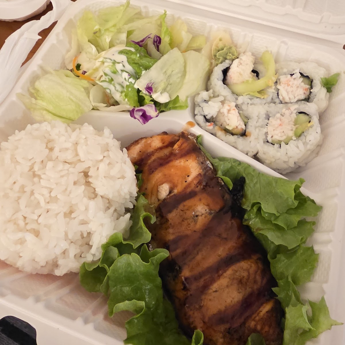 We stopped by California Sushi for a quick dinner. The dinner was packed. Food came fairly quick. My wife ordered the bento box with beef and I ordered Teriyaki beef plate. The food was ok for the price and we enjoyed it.