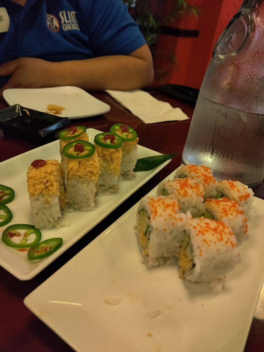 VERY fresh and amazing sushi. Had several rolls, Calamari, Gyoza, Miso soup. Not one disappointed!! Red Dragon Roll, Dragon Roll, Philadelphia Roll, Eel w Avocado, Shrimp Tempura Roll, Rainbow Roll, Salmon Roll. I have only been here 3 weeks and have been back SEVERAL times. Always leaving full, happy and wanting more. Can't wait to go back! The other 2 spots in town are OK, but this is THE spot for sushi! Going back atleast once a week.