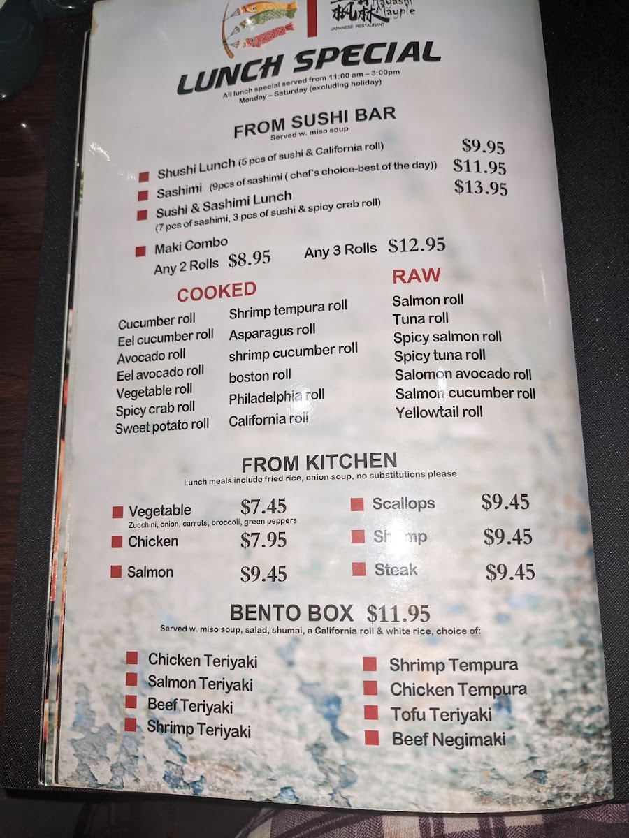 7 pieces sashimi, 3 pieces sushi, and spicy crab roll.