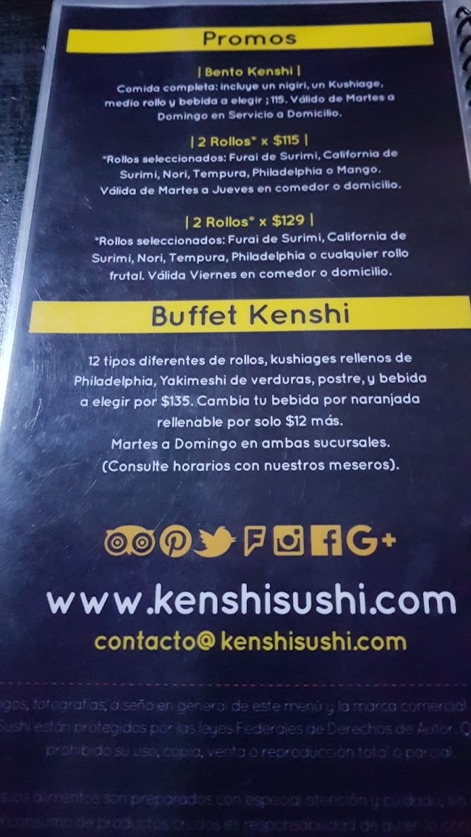 Kenshi Sushi Pensiones Menu