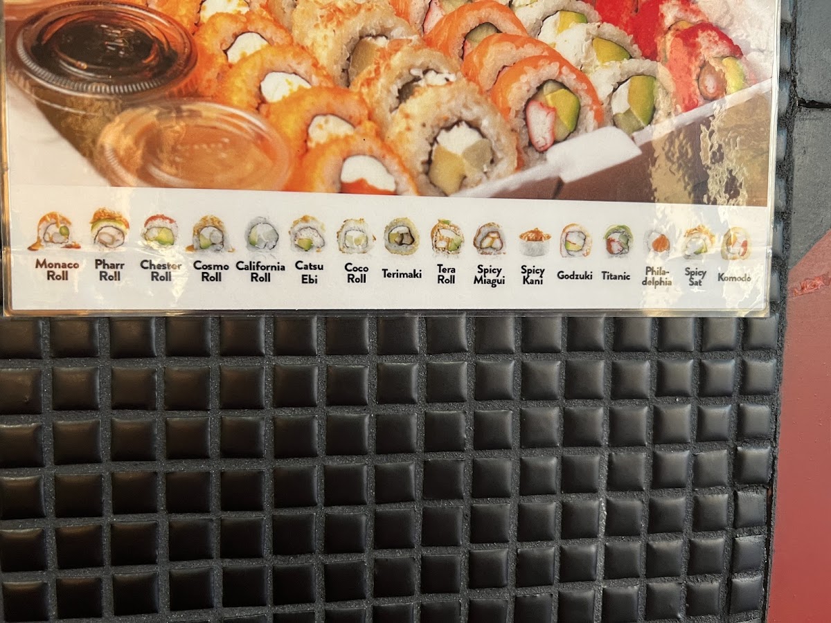 Twenty-four assorted sushi roll pieces, two entrées, two sides, two appetizers.