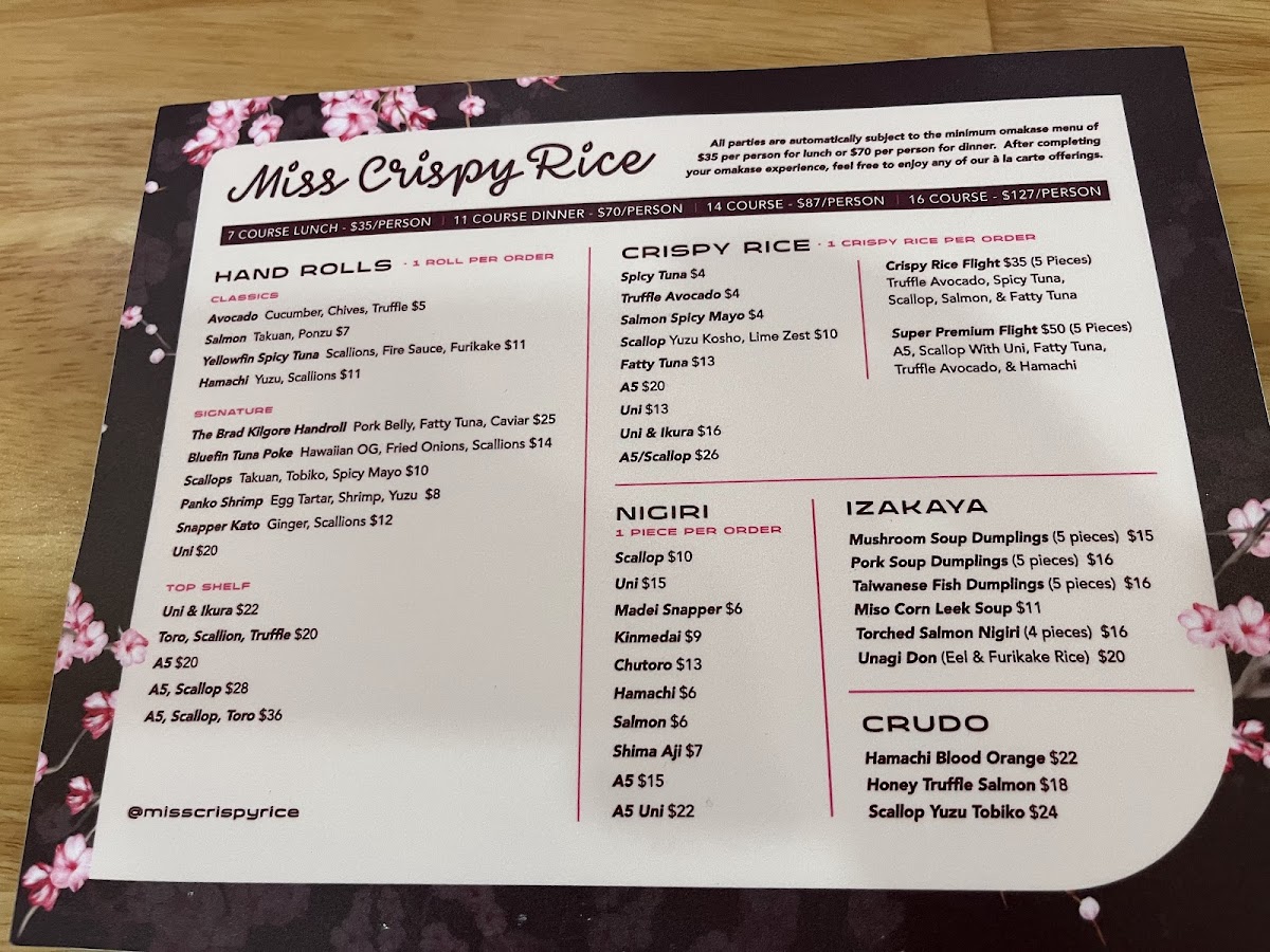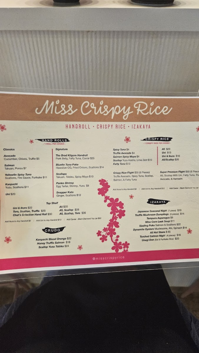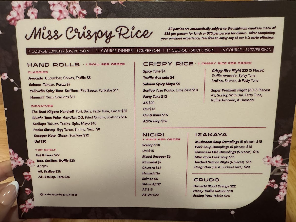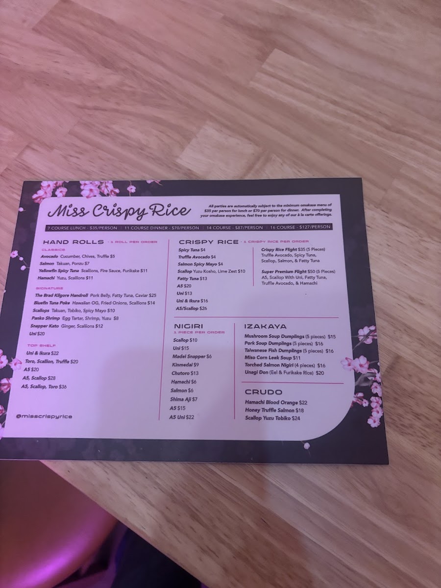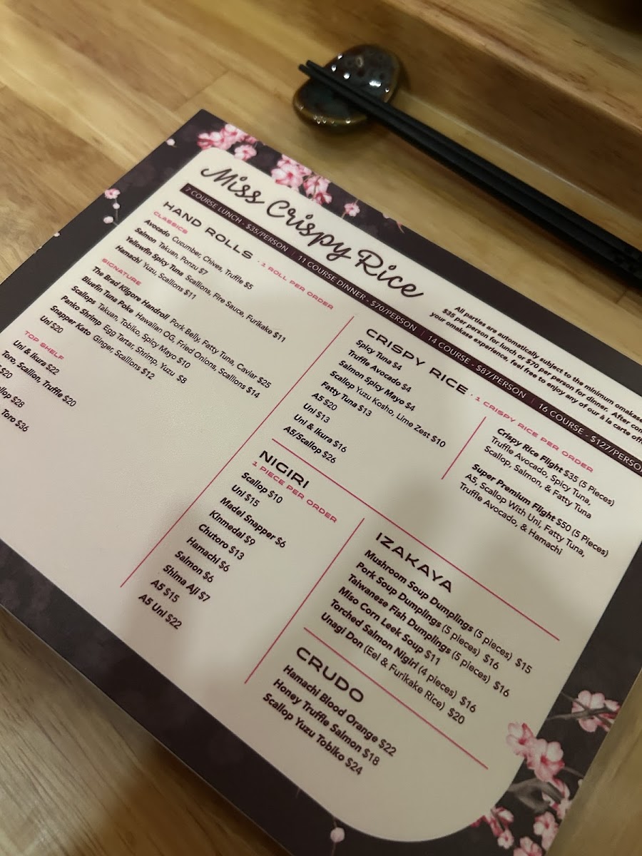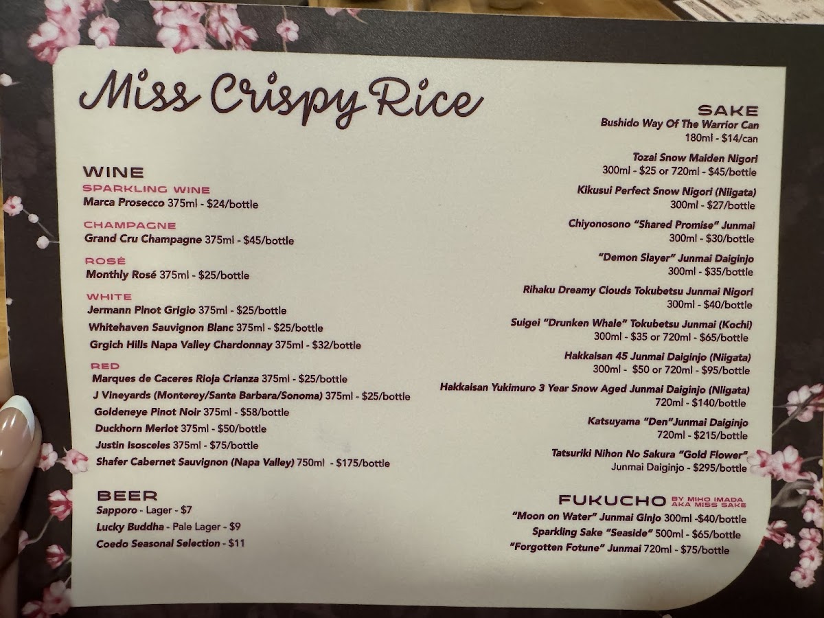 Tuna, Avocado Rolled Inside Out. Topped with Salmon, Spicy Mayo, Masago, & Rice Balls.