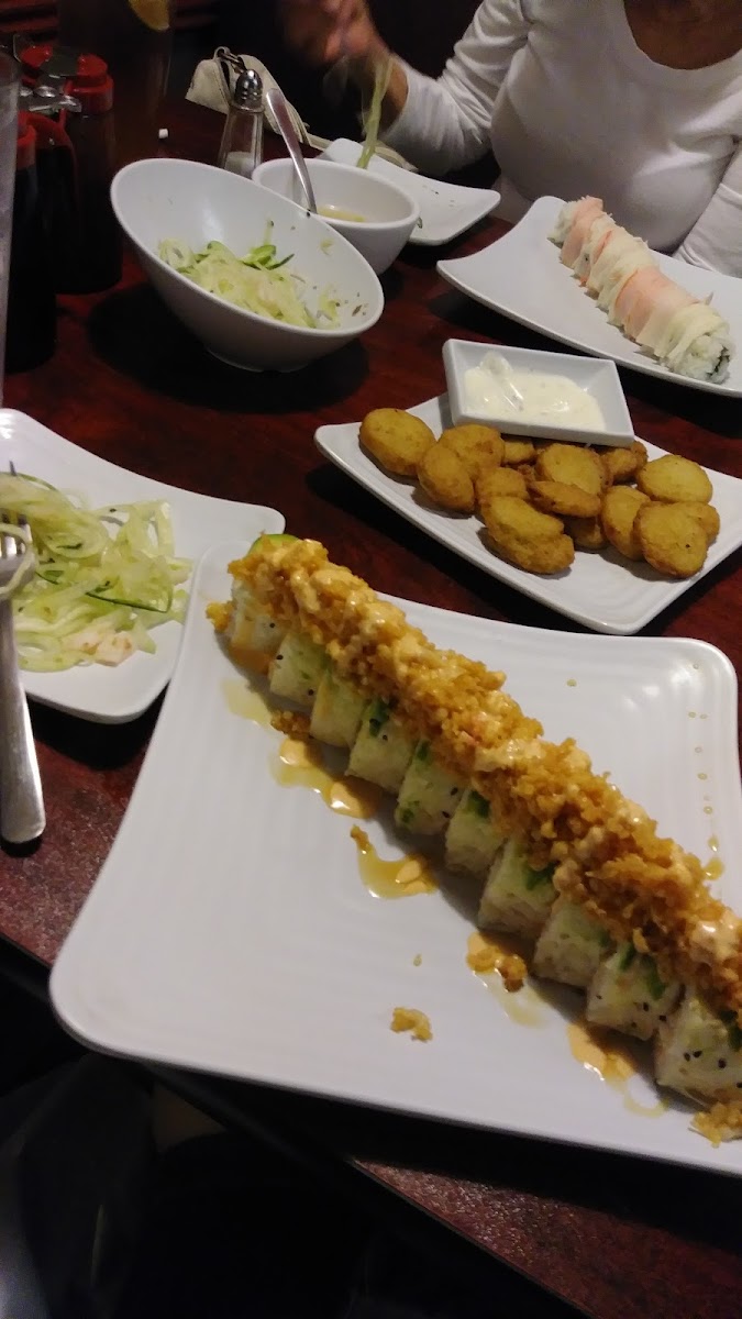 We took my mother in law here to celebrate mother's day. We made a reservation because there were nine of us but the building was plenty big enough that we didn't need one. The restaurant was fairly empty but the service was very slow and I had to repeatedly ask them to clear plates from the table. Aside from that, the food was wonderful. We started with appetizers (the fried pickles and edamame were delicious) and I have to say that I love the variety of sauces they leave on the table, very handy for dipping. The sushi was fresh and while the rice wasn't the best tasting, the fried rice sides were so much better! Overall I wouldn't mind eating here again.