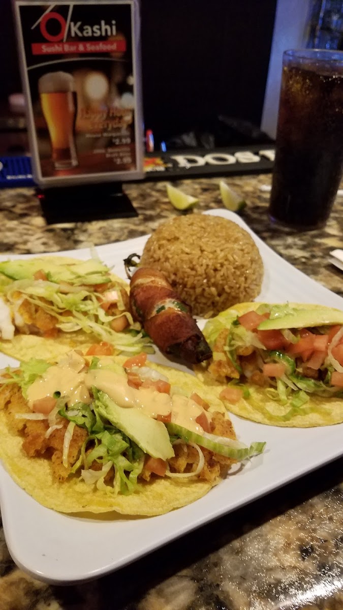 Okashi Sushi Bar & Seafood, located at 4761 E US Hwy 83 suite d, Rio Grande City, TX 78582, United States, is a Sushi Restaurant with 306 reviews. Its menu highlights include California Roll, Miso Soup Small, Margarita, Fish Tacos, and Mango Roll. The selection focuses on sushi and seafood dishes, paired with complementary beverages.