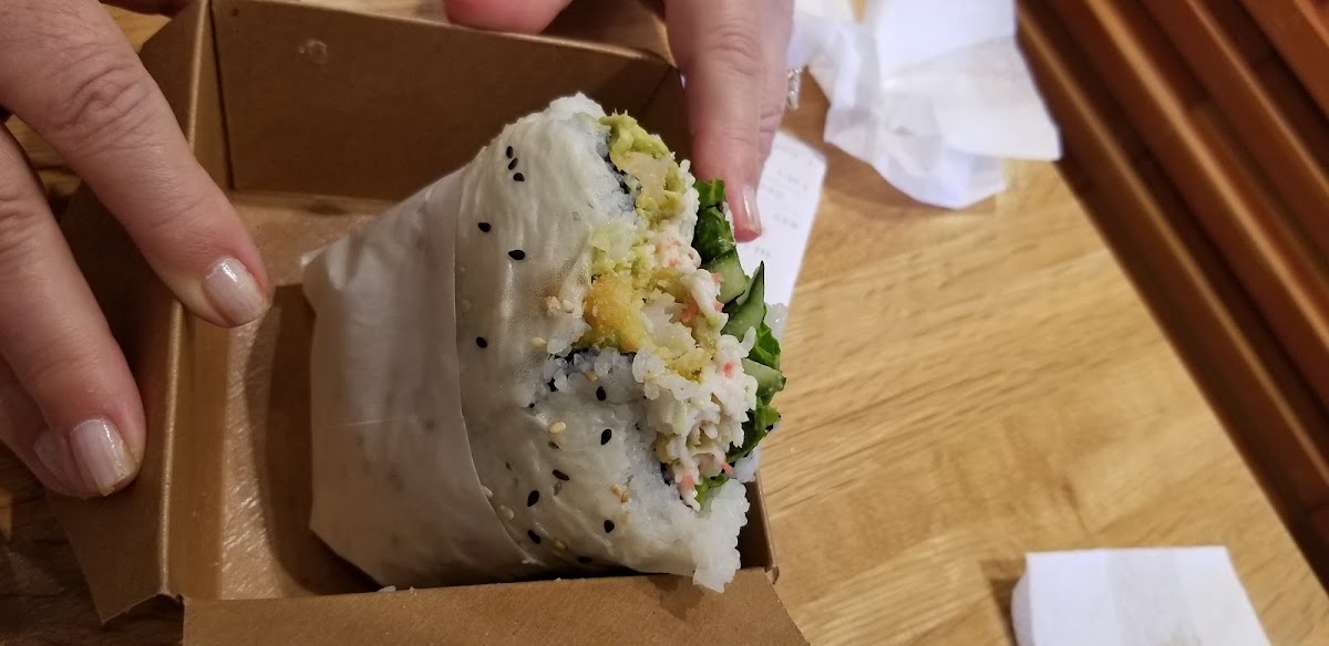 I really love their less rice option! I will get their yummy pocket sushi but less guilty about the rice! Red dragon was fantastic. Just enough kick for me. My kids got the California roll and they loved it as well. Place is pretty cute and staff was friendly.