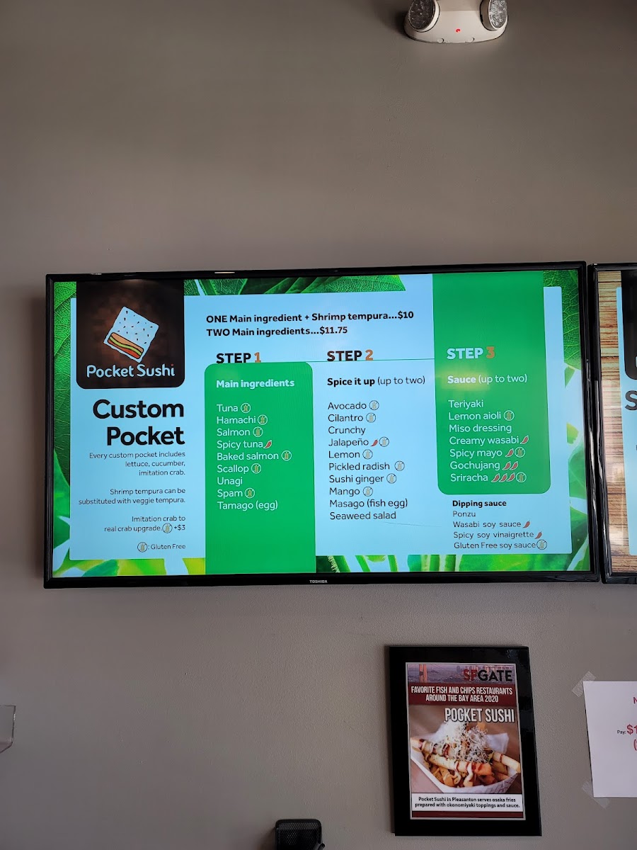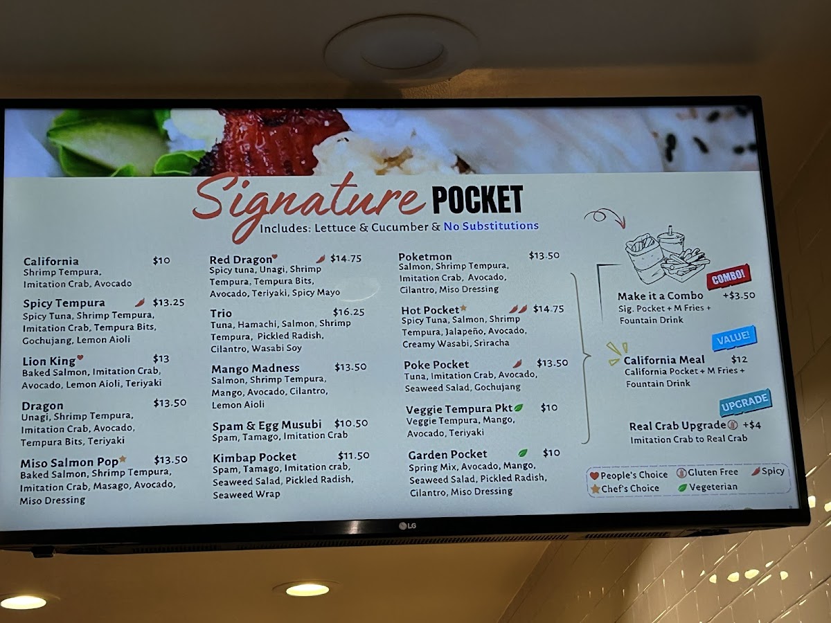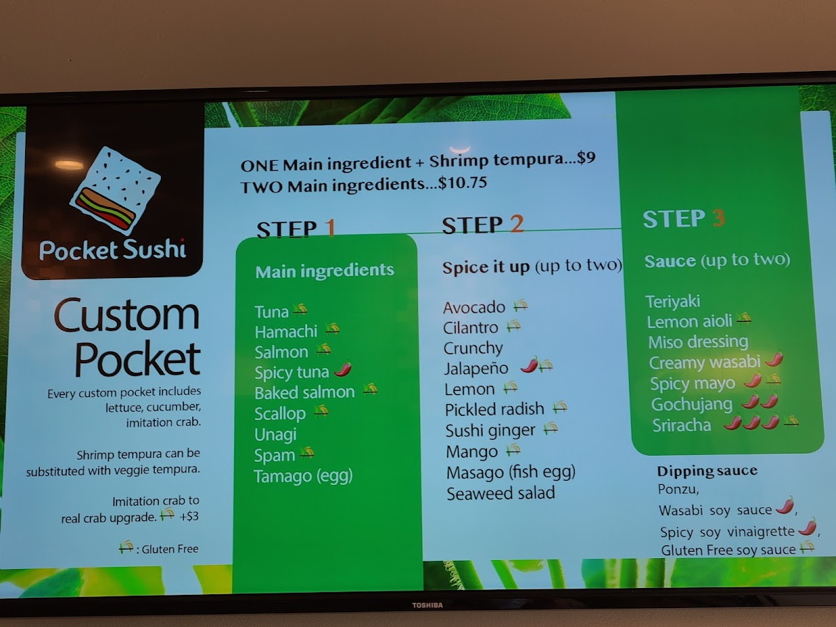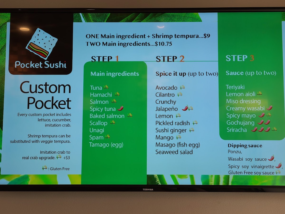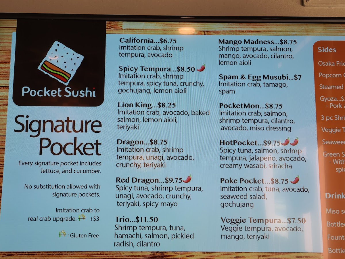 Each sushi pocket comes with one complimentary side of sauce and ginger upon request. For any extras, please place an order.