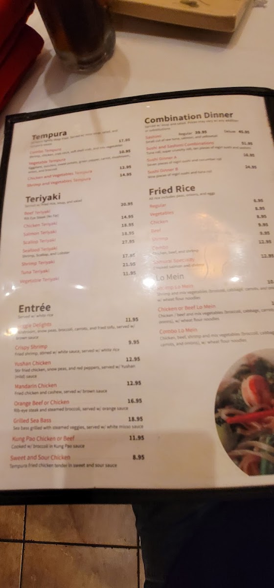 Teriyaki chicken, shrimp tempura, California roll, salad, and miso soup.