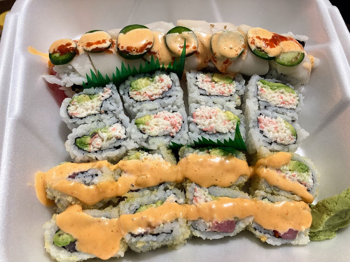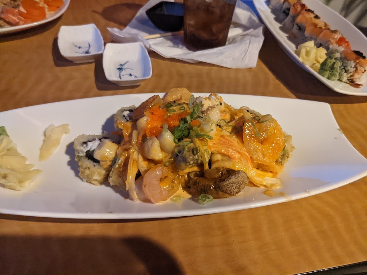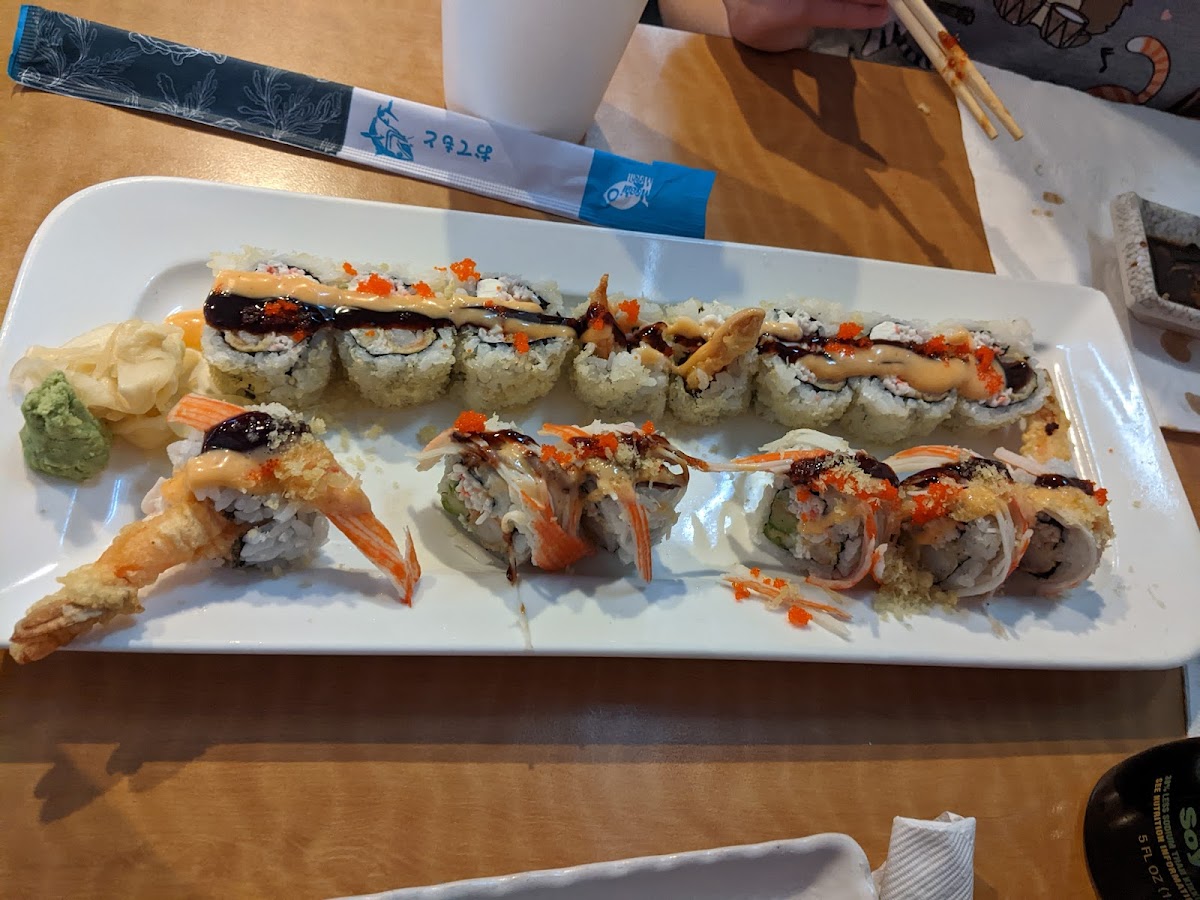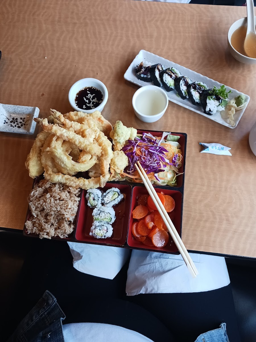 Huge menu with lots of sushi choices, tempura and hibachi dishes, and even desserts. Fast, friendly service and the food was delicious.