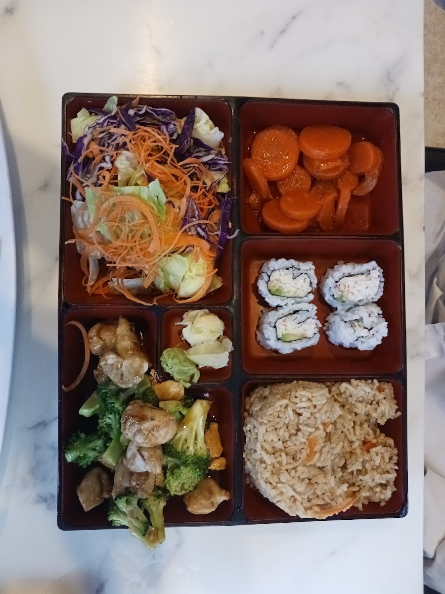 This place is AMAZING! Service was fast & friendly. When we arrived, we were the only ones. Within 20 minutes it started to fill up. They also do tons of take away orders. This was our order: Cruncy Rol[pic] Fried Calamari[pic] Hibachi Chicken Bento Box [Hibachi Chicken, fried rice, clear soup] Shrimp Tempura Bento Box [pic] large shrimp, broccoli, sweet potato, onion ring, salad, ginger, miso paste, clear soup [pic] Tempura Calamari [tender and delicious. Tons of food, both Bento Boxes included clear soup , so flavorful. As you can see, tons of good food! Had 2 to go boxes. The fried rice was some of the best plain fried rice we have ever had. We will definitely return, well worth it.