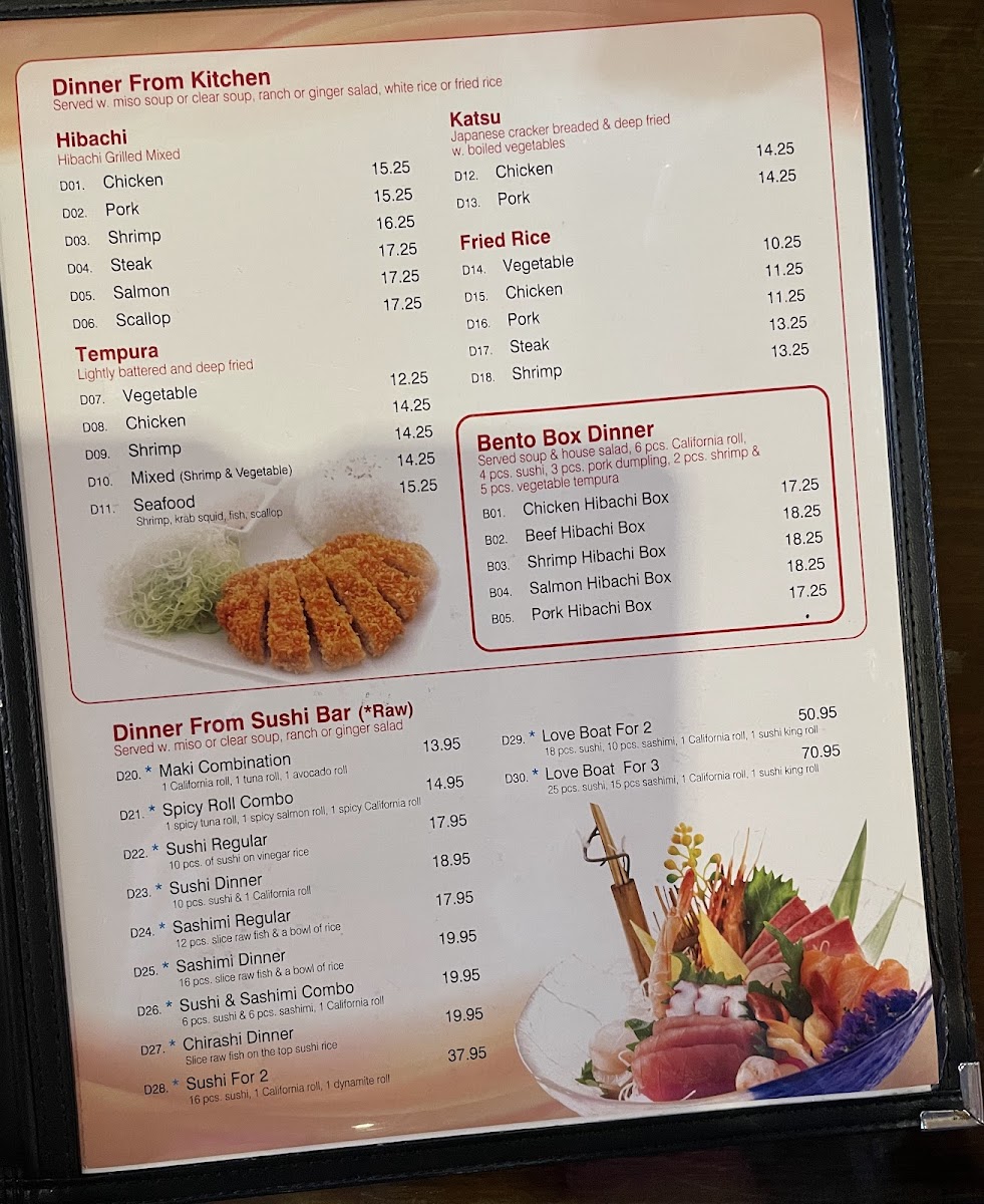 Additional charge for all tuna, salmon or yellowtail. Sashimi appetizer pieces are cut smaller than regular sashimi pieces. Consuming raw or undercooked meats and seafood may increase the risk of foodborne illness.