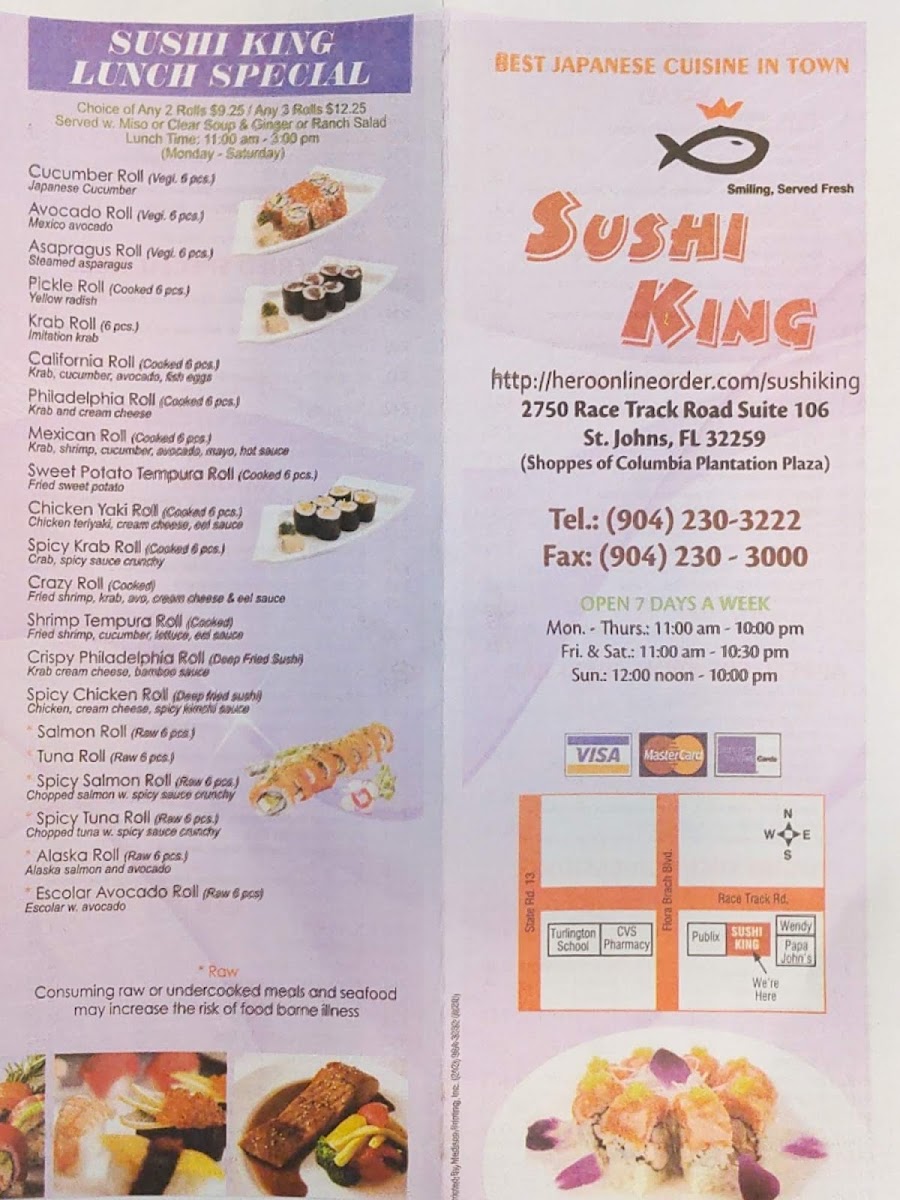 Five pcs. Sushi, five pcs sashimi, California roll. Consuming raw or undercooked meats and seafood may increase the risk of foodborne illness.