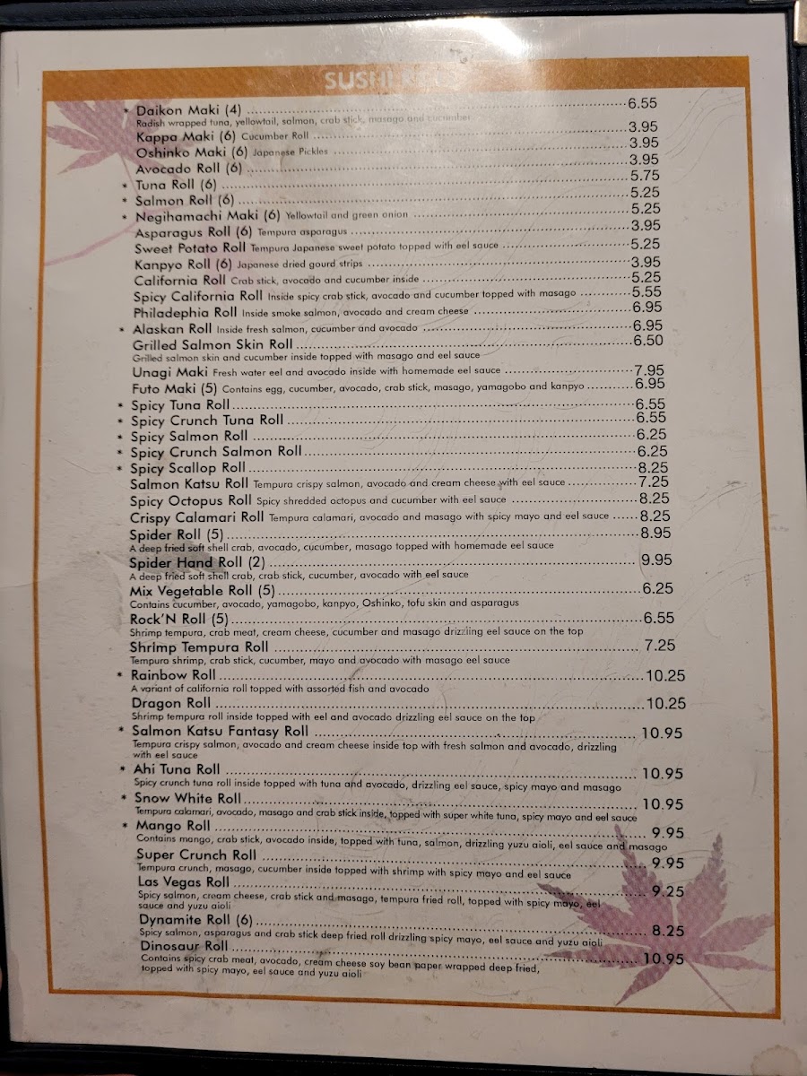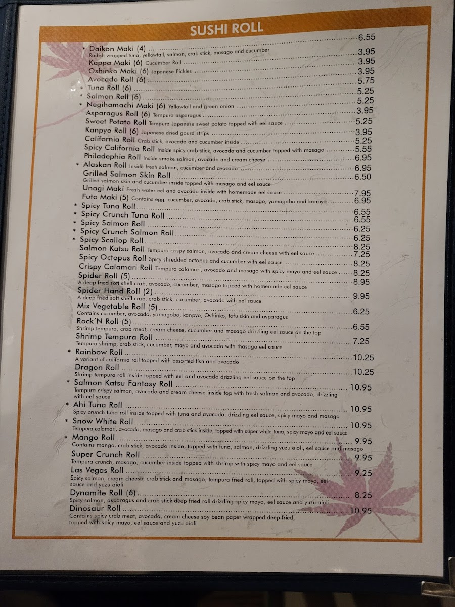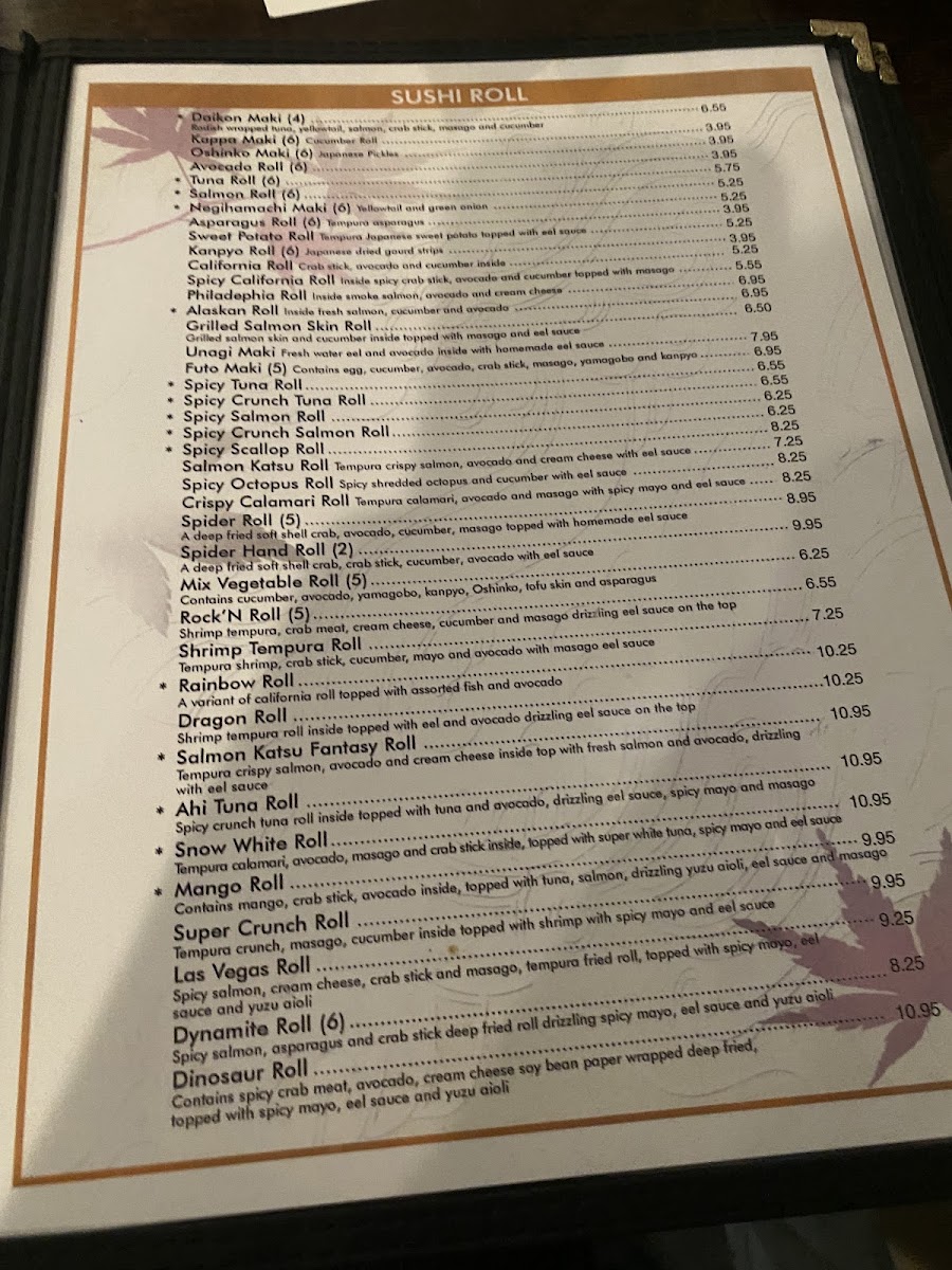 Contains spicy crab meat, avocado, cream cheese, soy bean paper wrapped deep fried, topped with spicy mayo, eel sauce and yuzu aioli.