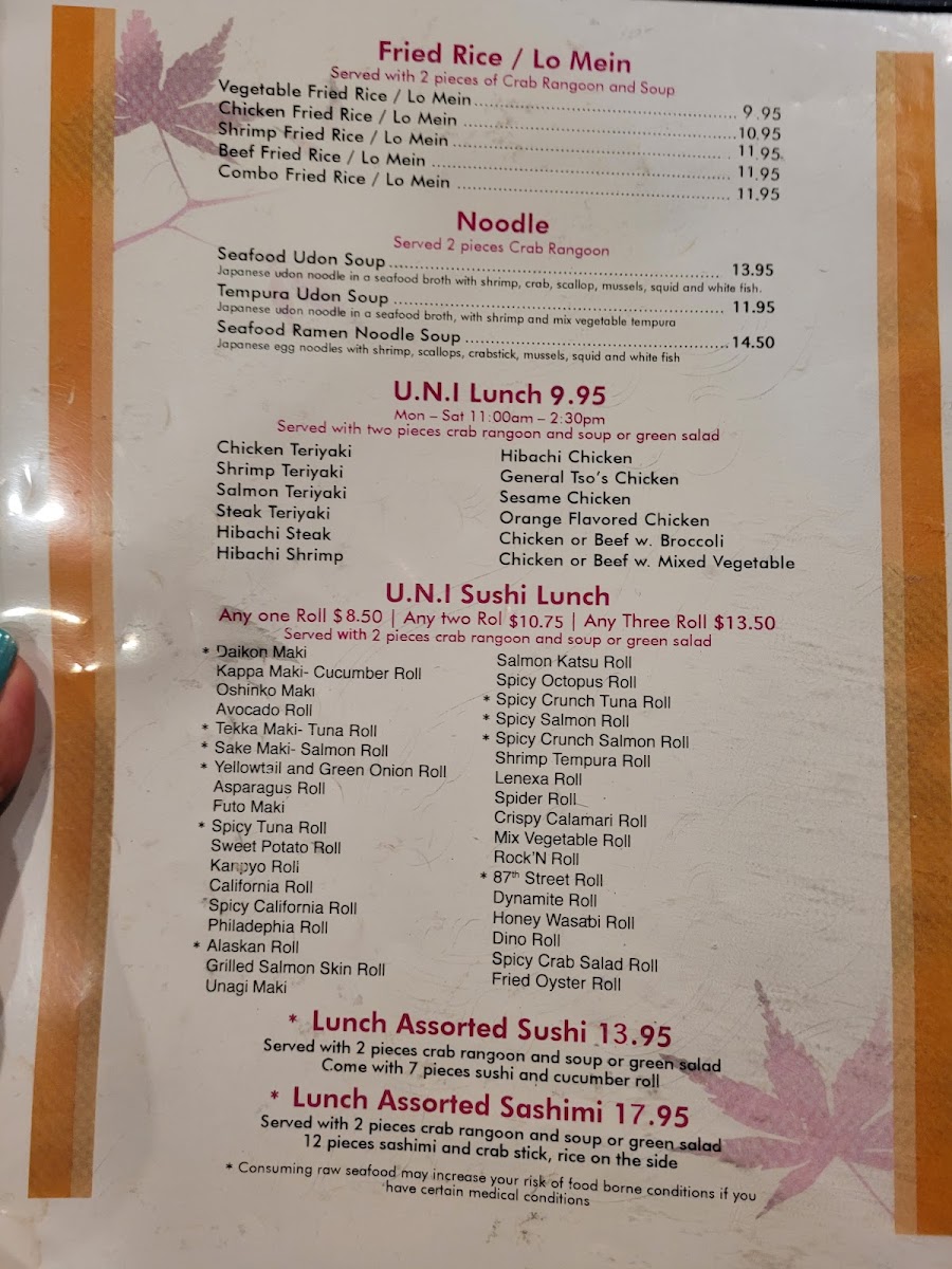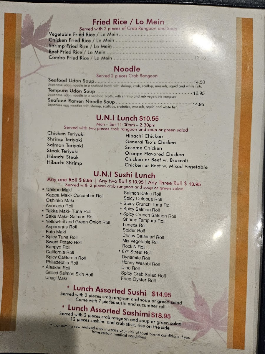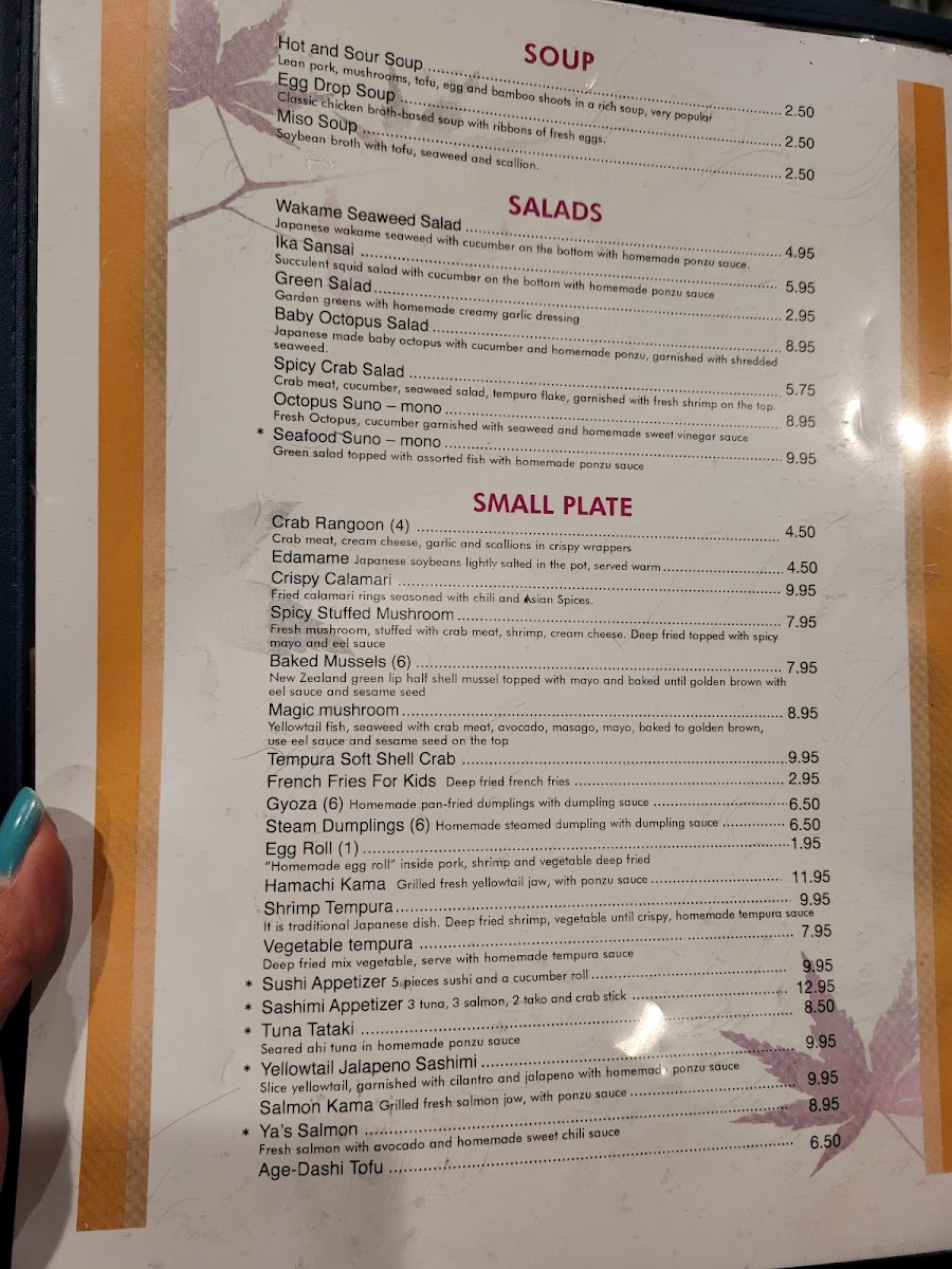 Contains spicy crab meat, avocado, cream cheese, soy bean paper wrapped deep fried, topped with spicy mayo, eel sauce and yuzu aioli.