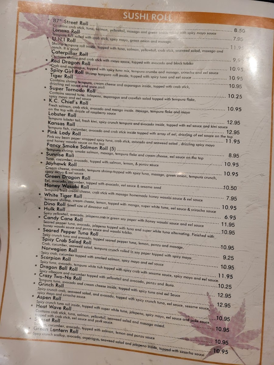 Spicy salmon, cream cheese, crab stick, tempura fried roll, topped with spicy mayo, eel sauce, and yuzu aioli.