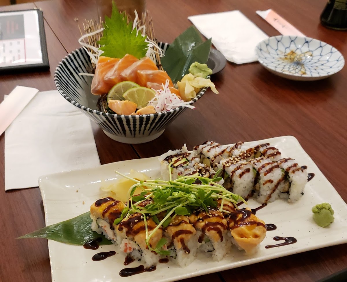 Such a clean and nice little restaurant. We are the only one table in the restaurant at lunchtime. They lock the door to prevent other people from coming, which feels very safe. We ordered a sort of sashimi, hibachi carpaccio, honomono salad and salmon dyno roll. All of them are super delicious, highly recommend it!