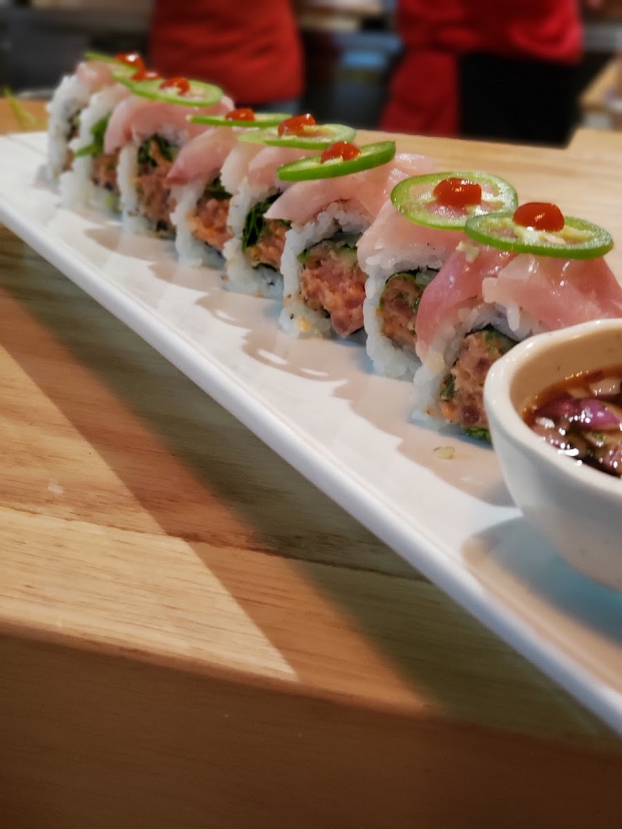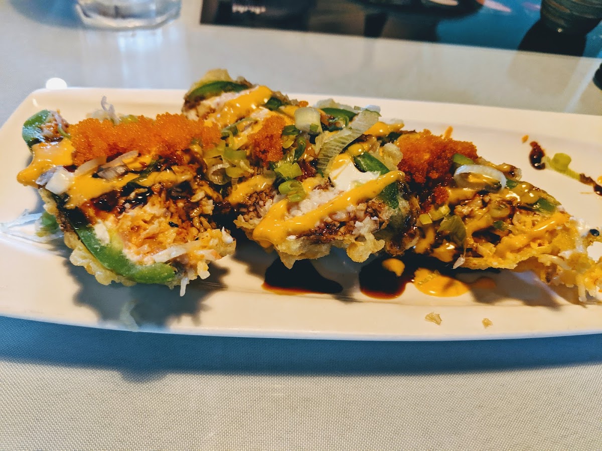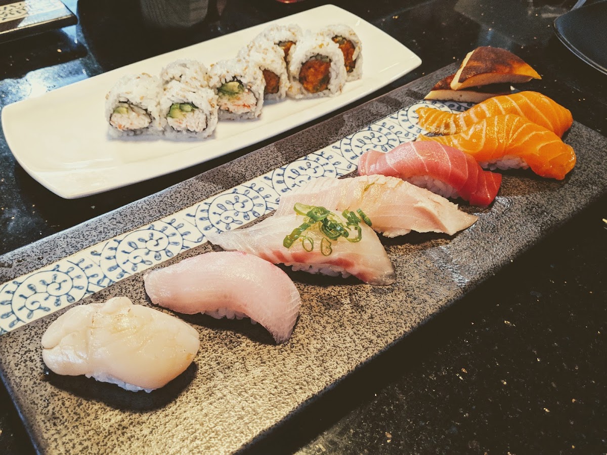 A very nice lunch/happy hour that’s a good deal in Temecula! Service was friendly and quick too. We got a Philadelphia Roll and Cherry Valley roll. The Cherry Valley wasn’t on the lunch/HH menu but was pretty fresh and was super tasty! The Tempura was plentiful also and came with a lot that was perfect to share. Pretty cool vibe inside too with lots of parking since it’s in a plaza.