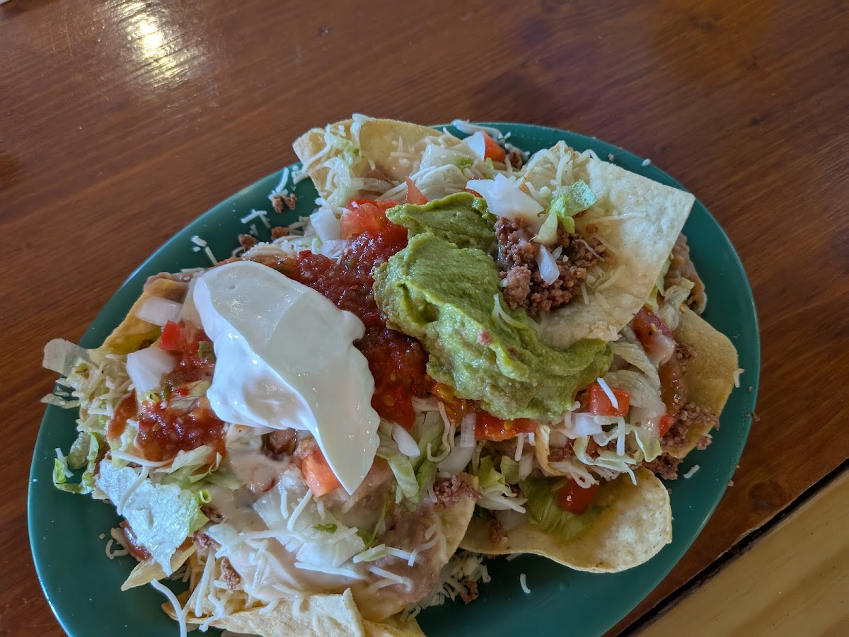 There seemed to be only two employees (bartender and cook) and the bartender profusely apologized for the time it took to be served. The bar was pretty full and most tables were taken so it was busy. However, it didn't take as long as expected so that was a pleasant surprise. We started with the homemade chips and salsa. The chips were warm and were really good. We had the three pack of fish and vegetable taco with the shrimp Thai. These were very flavorful. We also had the three pack of cowboy tacos. The tacos were pretty standard, but worth another visit. They were filling without a lot of fluff.