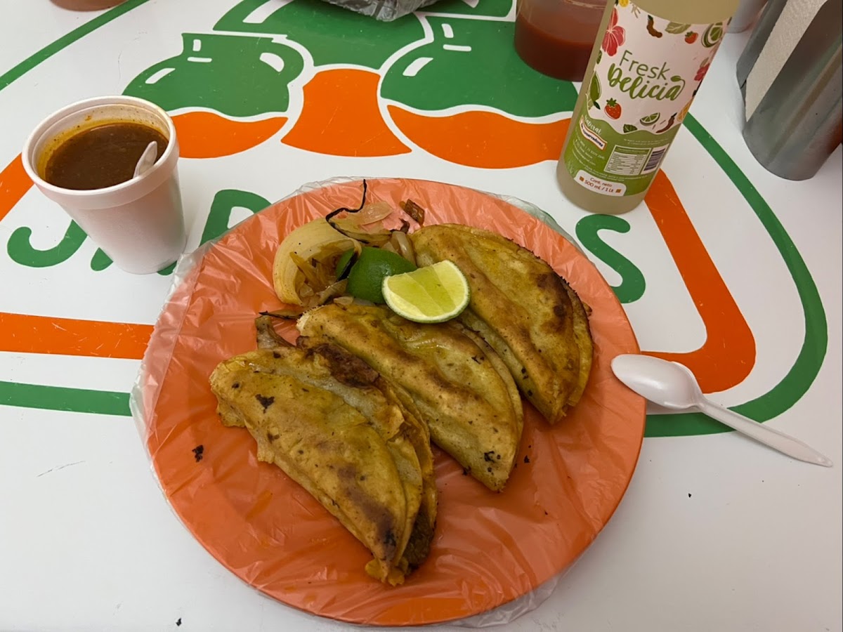Excellent tacos! You know this place is great because it's filled with locals. It is also very affordable. I got 2 tacos de barbacoa and 1 taco con queso.