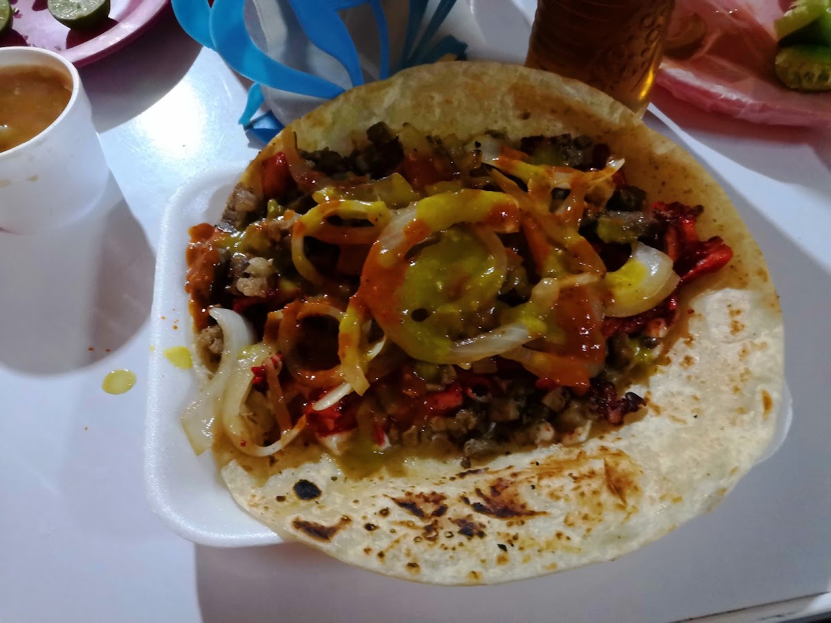 Riquísimos los tacos de trompo y carne asada, y la salsa verde está muy buena. Rápido y amable el servicio.