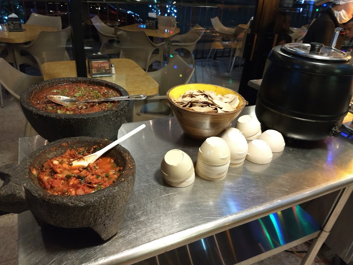 Close AND open area. During summer AC inside and foggers outside. Winter? Heaters or enclosed! Great ample menu. Extra included? Beans, chicharron and cucumbers. A complete salsa bar, with nothing missing in it. Cherries of the pie? Awesome service!
