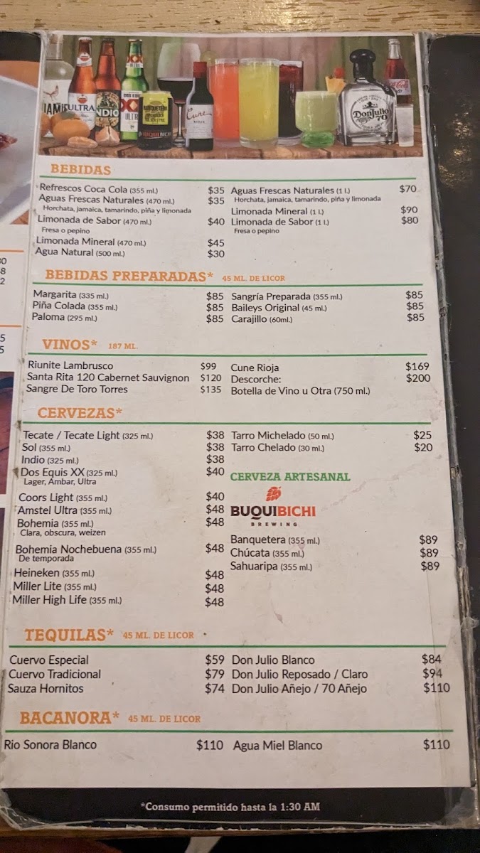 Urban Taco Sonora Grill Beer Menu