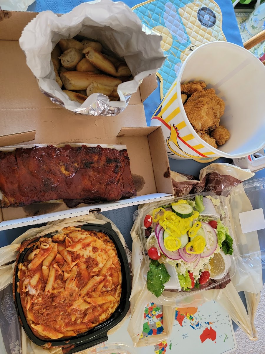 Great quality take out food. We love the mostaccioli, lasagne, greek salad, and breadsticks the best. We've ordered from here for many parties and occasions in the past and they never disappoint. Ribs are tender, but we like to add our own sauce.