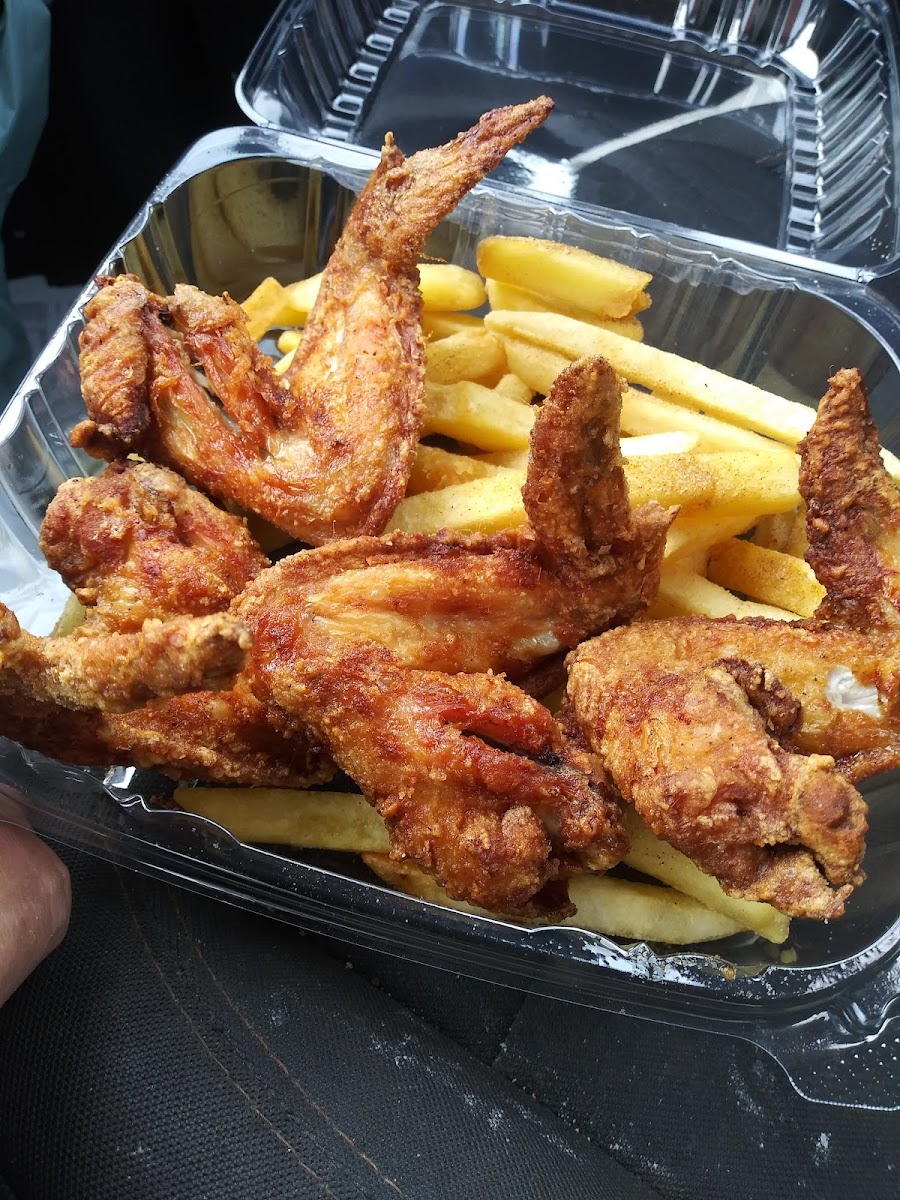 Stopped thru here after seeing my peoples over at D.O.C..... The thin lady that works here always gives me a big smile. As always it's never a long wait when you're waiting for your food here. I grabbed the chicken box, four wings and fries. The fries are cooked just right, as well as the chicken. Its never a disappointment when ordering your meal from here. Good people good food.