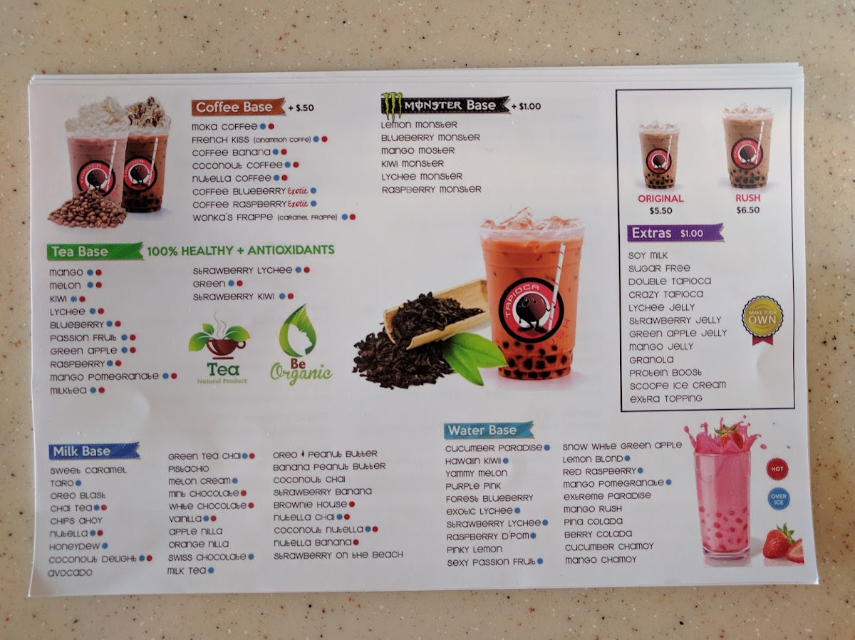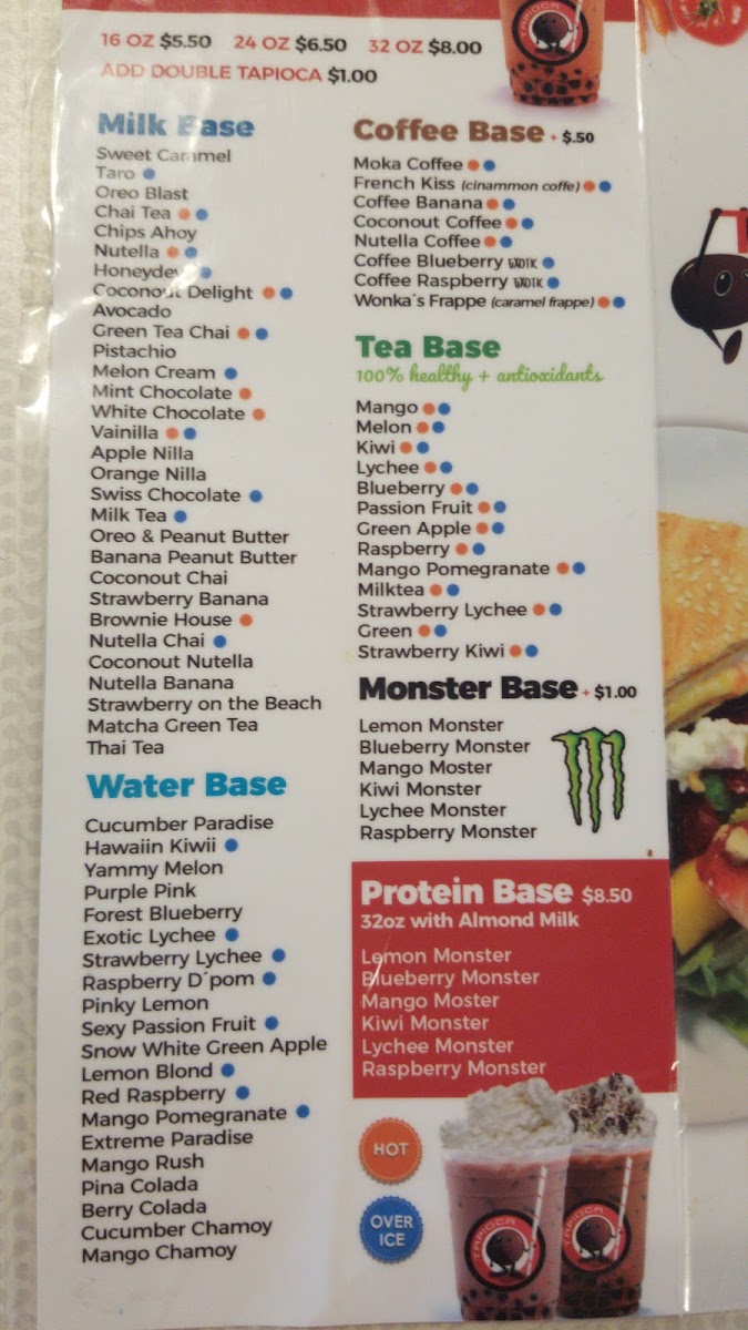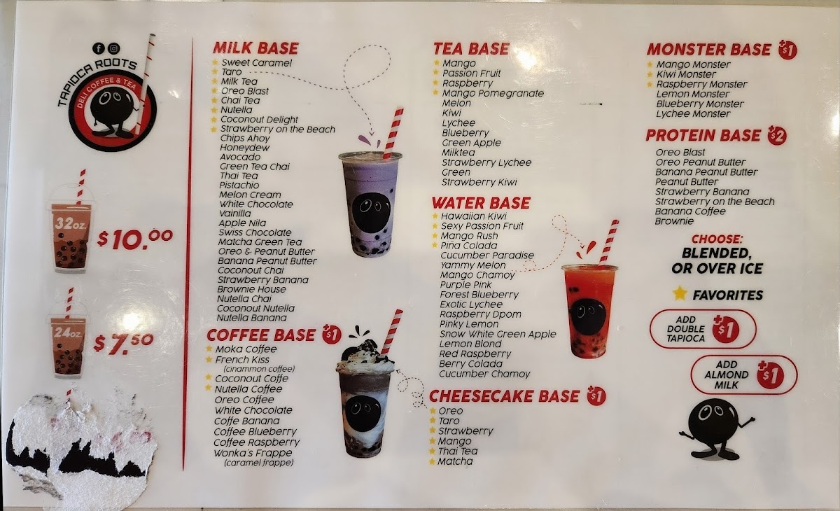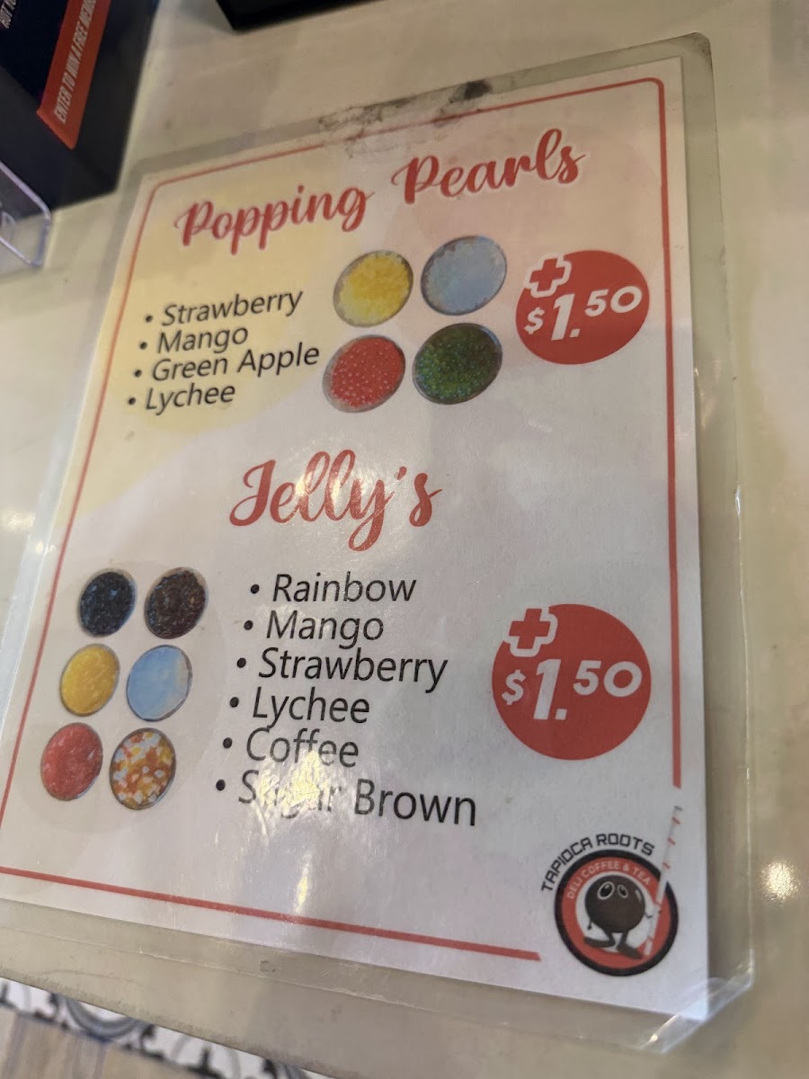 Tapioca, taro, macha or Thai tea flavor for an additional charge.
