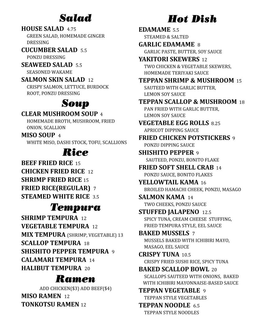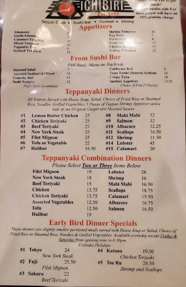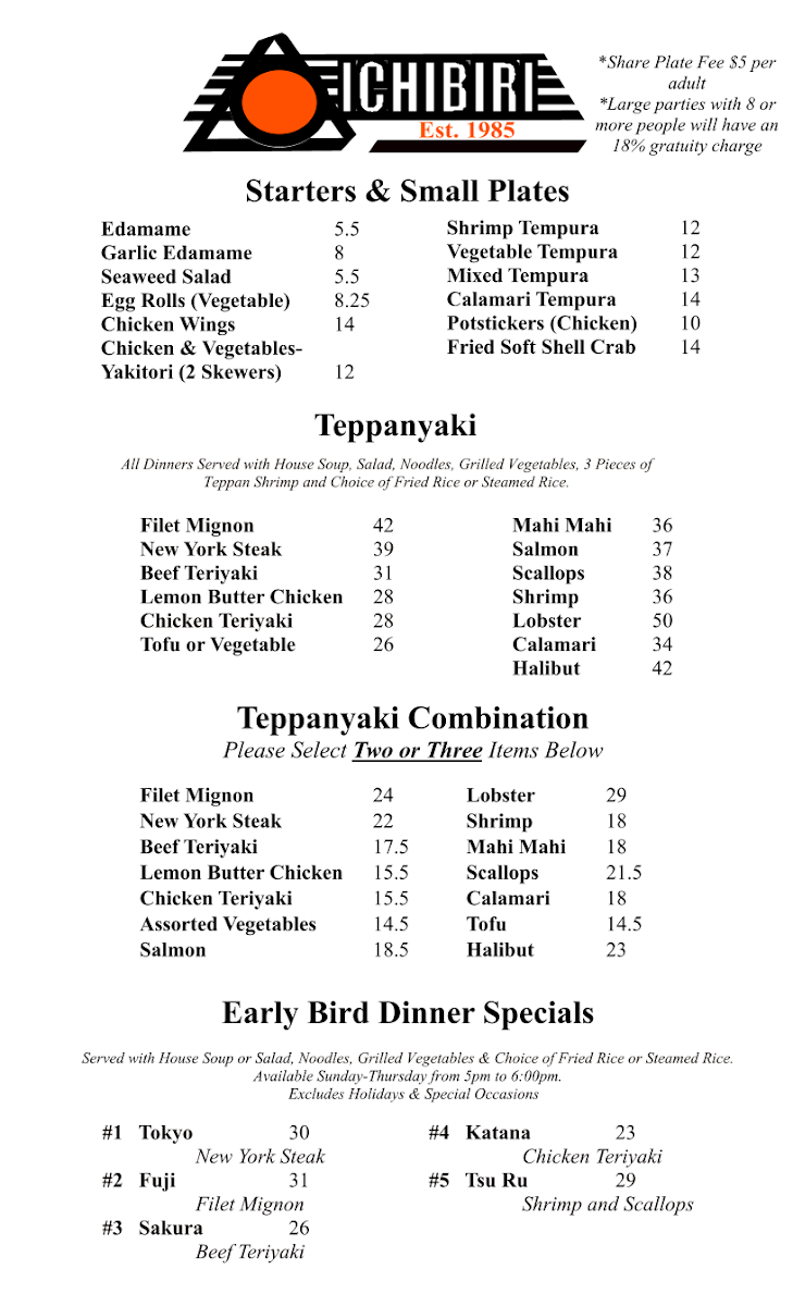 a japanese favorite prepared with ichibiri's own recipe. your choice of chicken or beef