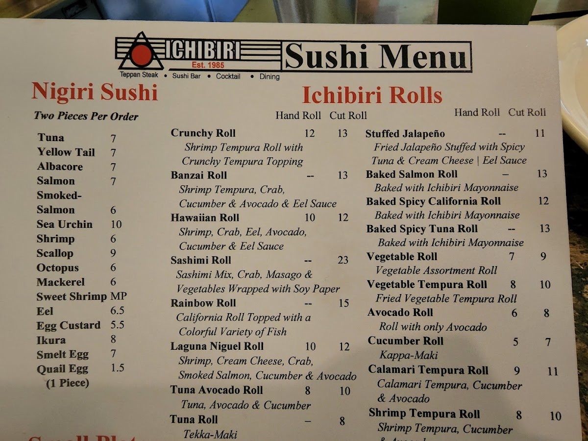 1 each (tuna, yellow tail, halibut, shrimp & salmon)
