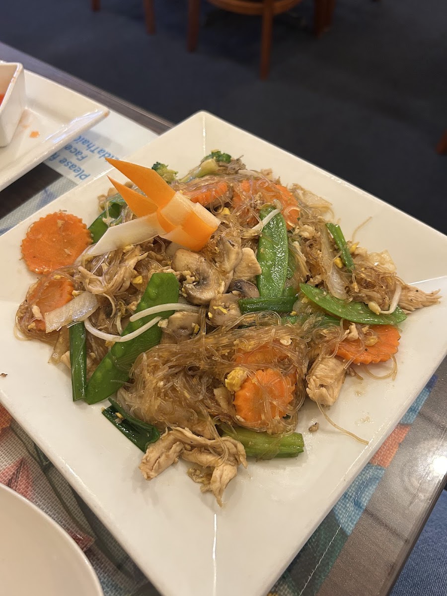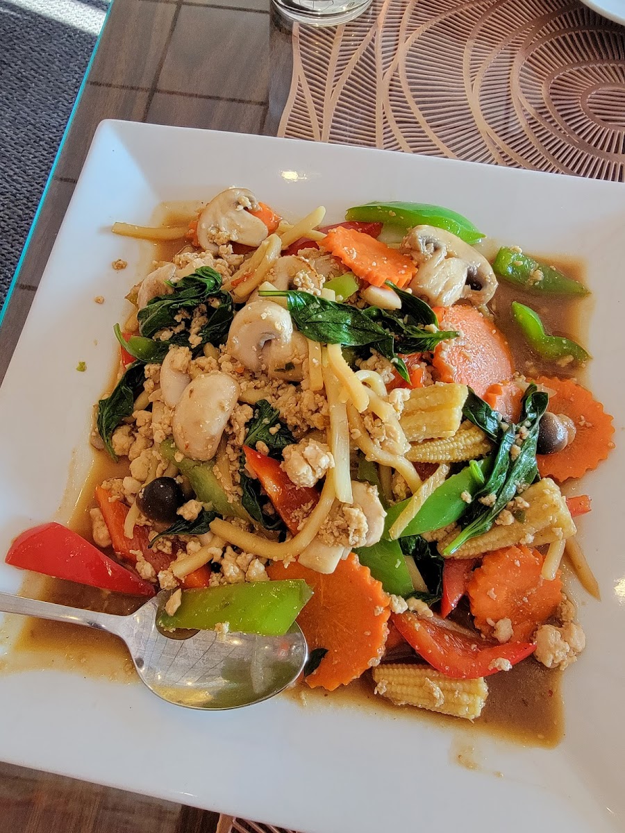 Very good small Thai restaurant. Service was outstanding and very attentive. I enjoyed my basil chicken that was full of flavor. My wife, who is from Thailand, gave 5 stars for the Shrimp with Glass Noodles. Of the many Thai places we have been, this is the only place offering this on the menu. Delicious