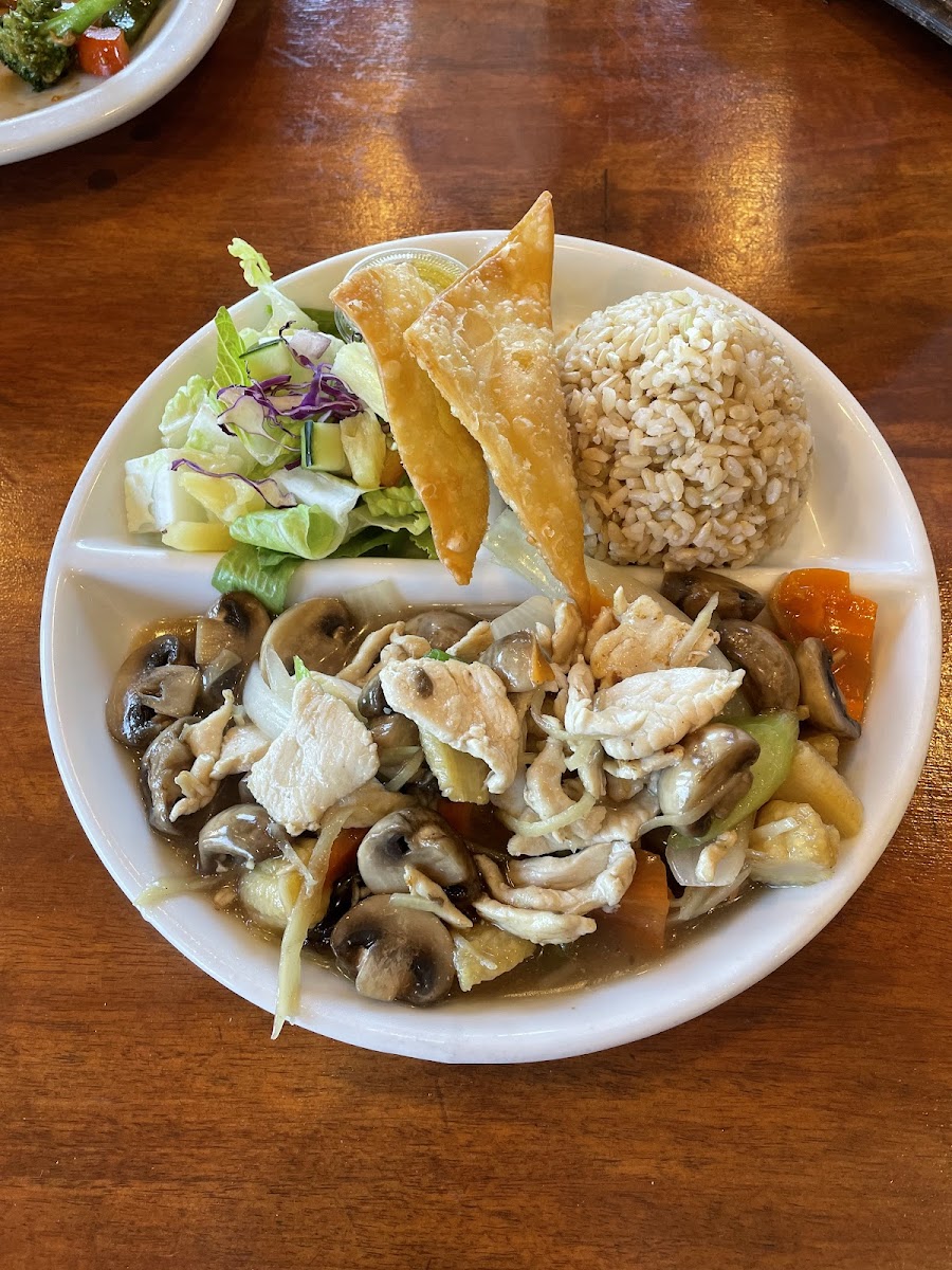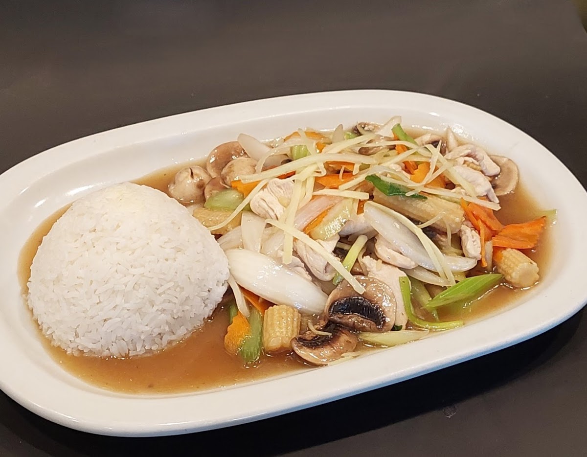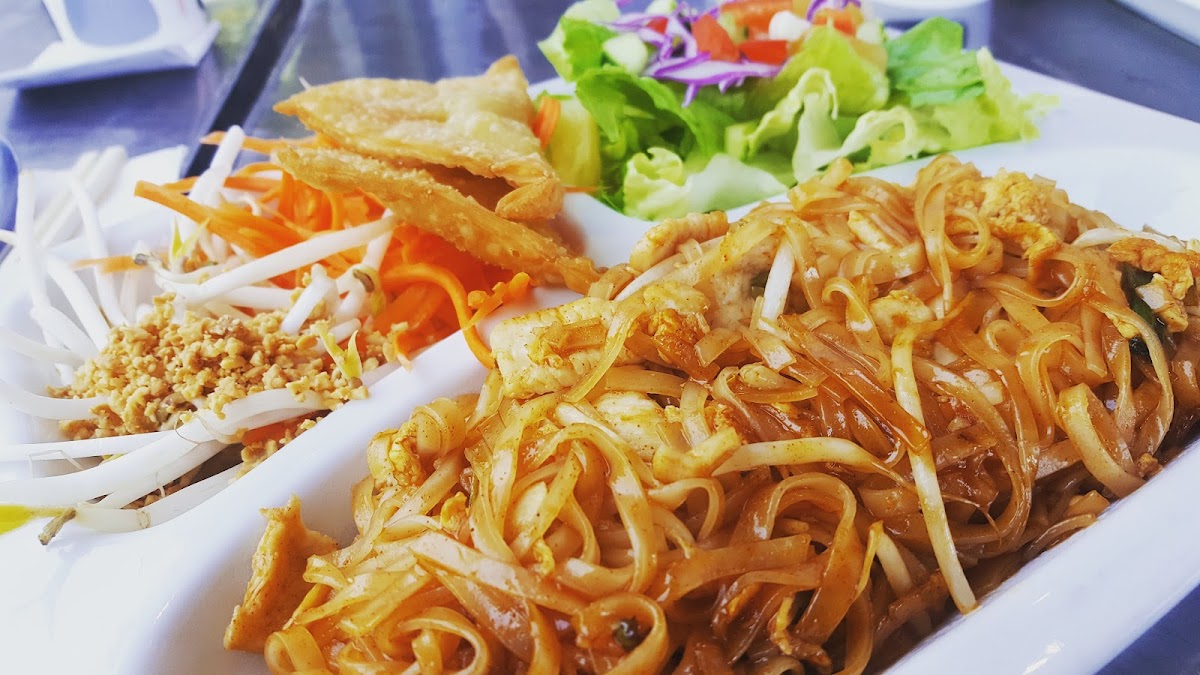 Lovely service from the waitress. She was very sweet and hospitable. This location is ideal for 2 people. There’s only one large table in the center of the restaurant. We ordered the fried rice and added chicken. We also got the pad see ew and added beef. Both dishes were flavorful and delicious. The only disappointment were the crab ragoons. I’m used to a thicker cream cheese taste with the bits of crab and these had more of a liquid-ish cheese with bell peppers. In all fairness, I personally do not like bell peppers. The ragoons do not deter me from returning. I would definitely come back.