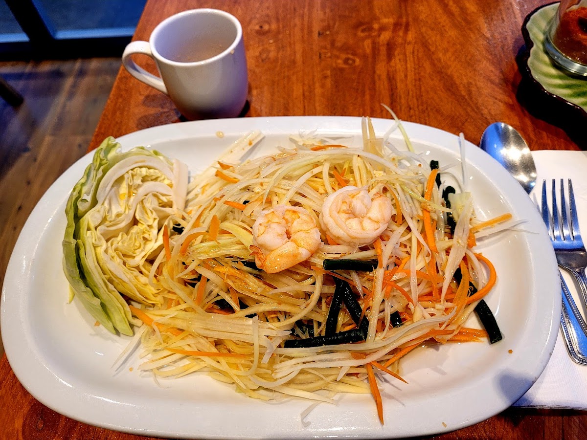 Dragonfly Thai is a Thai restaurant located at 50-A Peninsula Center in Rolling Hills Estates, CA. It has received 158 user reviews. The restaurant experiences no wait times on most days including Tuesday through Sunday. Their popular dishes include Green Curry, Papaya Salad with Shrimp, Eggplant Lover, Veggie Spring Rolls (4 pieces), and Pad Thai. It offers a variety of authentic Thai flavors in a relaxed setting, catering to those who enjoy vibrant and fresh ingredients.
